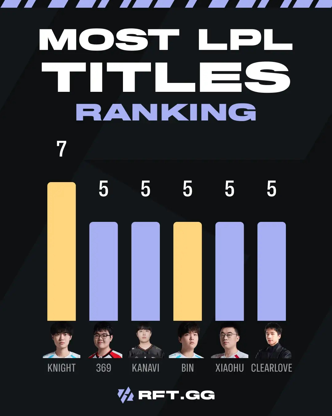 LPL冠军选手盘点,厂长退役这么多年居然还能排第二?Knight 7次位列第一369、Kanavi、Bin、Xiaohu、Clearlove五人均5次并列第二。厂长S9退役时LPL一共也就14个冠军,他拿了三分之一还多已经很可怕了,而且不是混的,是真的C。远古时期御三家WE、EDG都是他效力过的队伍uzi杯官宣2026lpl第一赛段英雄联盟