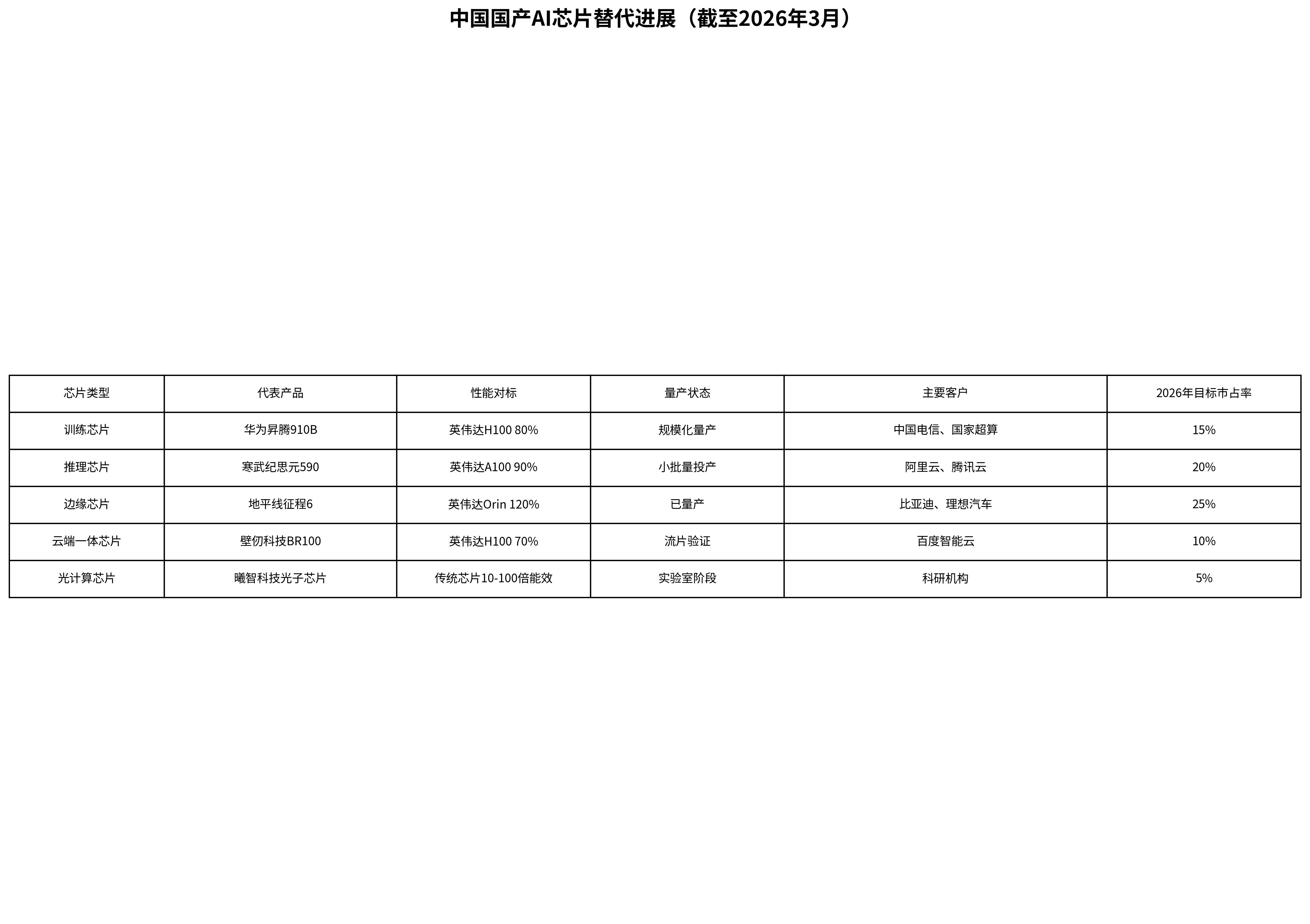 市场应用:政府要求2026年国产芯片采购比例不低于50%,商业领域加速适配,新兴场景优先采用国产方案。