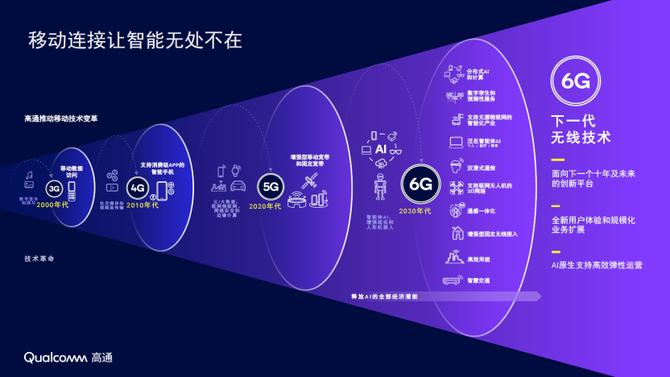 更值得关注的是,高通将6G打造为端到端的AI原生系统,实现“云端算力优势、网络稳定承载、终端智能自治”的协同架构,成为本次展会最具前瞻性的技术突破,也让其在6G领域的技术探索成为产业发展的重要参考。从2G时代奠定CDMA蜂窝通信基础,到3G推动移动互联网普及,4G催生移动应用经济,5G构建万物互联的智能体系,高通数十年深耕无线通信领域,深度参与每一代移动通信技术的演进。 在AI与通信深度融合的新周期,高通再次站在产业前沿,以MWC2026为契机,展现了从5G-A向6G平滑过渡的技术路径,更构建起覆盖终端、网络、云基础设施的全场景智能连接体系。