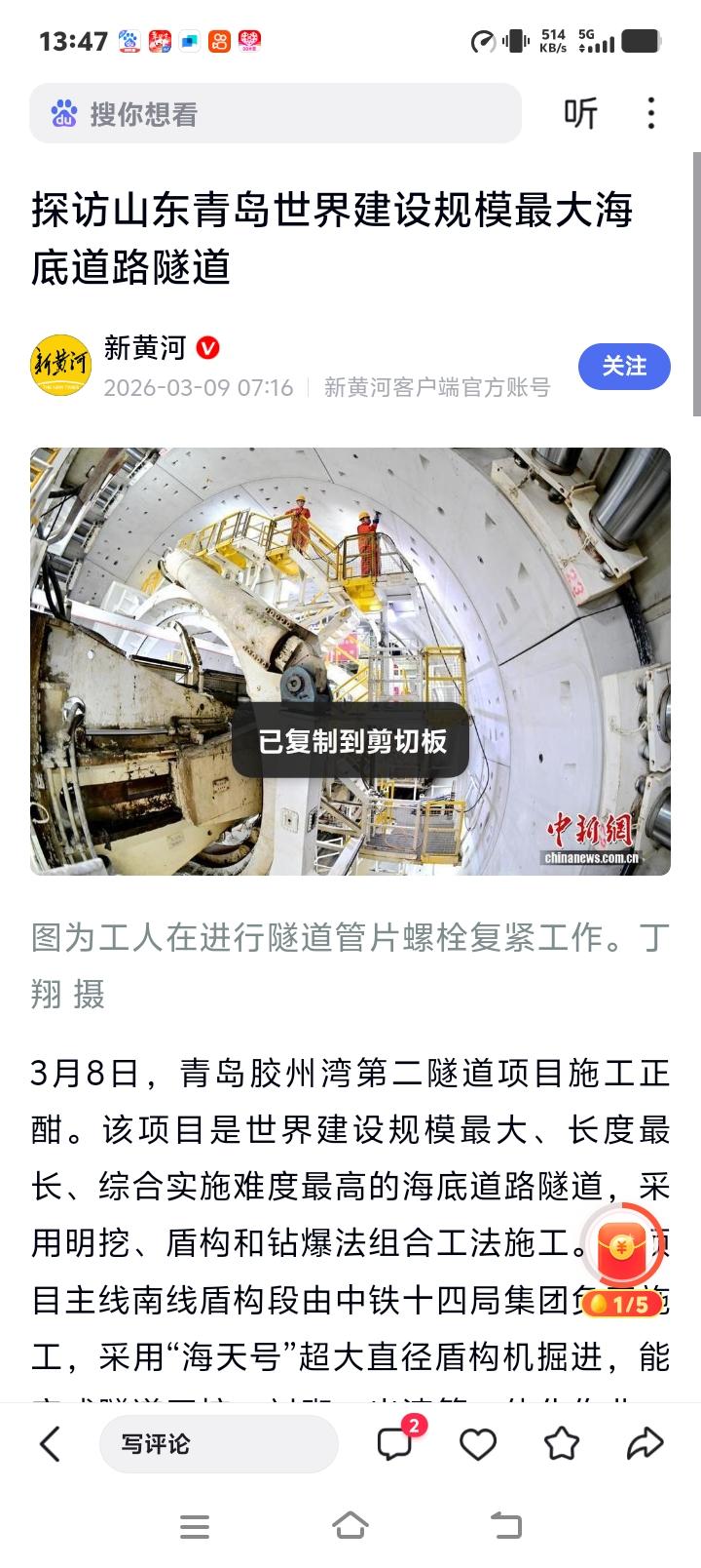 青岛海底巨龙苏醒!世界第一隧道暗藏中国人逆天改命的终极密码,看完热血沸腾! 当你在胶州湾的海面上欣赏碧波万顷时,可曾想过脚下百米深处,正上演着一场无声的史诗?这不是科幻电影,而是青岛胶州湾第二隧道施工现场。这里没有超级英雄,只有一群平凡的工人,用双手在海底“搭积木”,构建着世界建设规模最大、难度最高的海底道路隧道。 想象一下,在巨大的水压与地质风险下,“海天号”盾构机如同一条钢铁巨龙,沉稳地向黑暗深处掘进。它的每一次旋转,都在挑战人类工程的极限。这不仅仅是挖通一条路,更像是在地球的脉搏上,进行一场精密的外科手术。 然而,比技术更震撼的,是那些与钢铁巨兽为伴的人。盾构机机长全神贯注地盯着操控台,他的每一个指令都关乎整个团队的安危。隧道深处,工人们复紧螺栓、巡检管片,他们的身影在灯光下显得渺小,却撑起了这项宏伟工程的脊梁。 为什么我们要不惜代价,在海底建造这样的奇迹?答案藏在每个中国人的出行地图里。它不仅是连接两岸的捷径,更是城市发展的动脉,是打破地理桎梏、追求更高效未来的决心。它缩短的不仅是距离,更是人与人、城与区域之间的发展代差。 从“蜀道难”到“海底通”,中国人的工程哲学从来不是征服自然,而是学习与共处。胶州湾隧道采用的组合工法,就像一套组合拳,灵活应对复杂地质。这背后,是无数次的模拟推演与技术创新,是将不可能变为可能的智慧结晶。 当你未来驾车穿越这条海底长廊,几分钟的黑暗穿梭后重见光明,那一刻的畅通感,正是此刻无数建设者用汗水浇筑的礼物。他们留下的不是名字,而是一条让后代受益百年的大道。这种“功成不必在我”的奉献,才是工程奇迹中最闪耀的人性之光。 这条隧道,像极了我们的人生——于压力下前行,在黑暗中寻找方向,靠每一块“管片”般的扎实努力,最终构筑起通往目标的坦途。它无声地告诉我们:再深的阻隔,也挡不住向前的步伐;再难的工程,也始于第一铲的坚定。 胶州湾的海水依旧潮起潮落,而海底的征程永不停歇。这条隧道承载的,不仅是车流,更是一个民族对美好生活的向往,和那份刻在骨子里、逢山开路遇水搭桥的闯劲。下次当你感叹中国速度时,请记得海底那些无名英雄的身影。 (来源:中国新闻网、新黄河客户端等综合报道) 中国基建 青岛奇迹