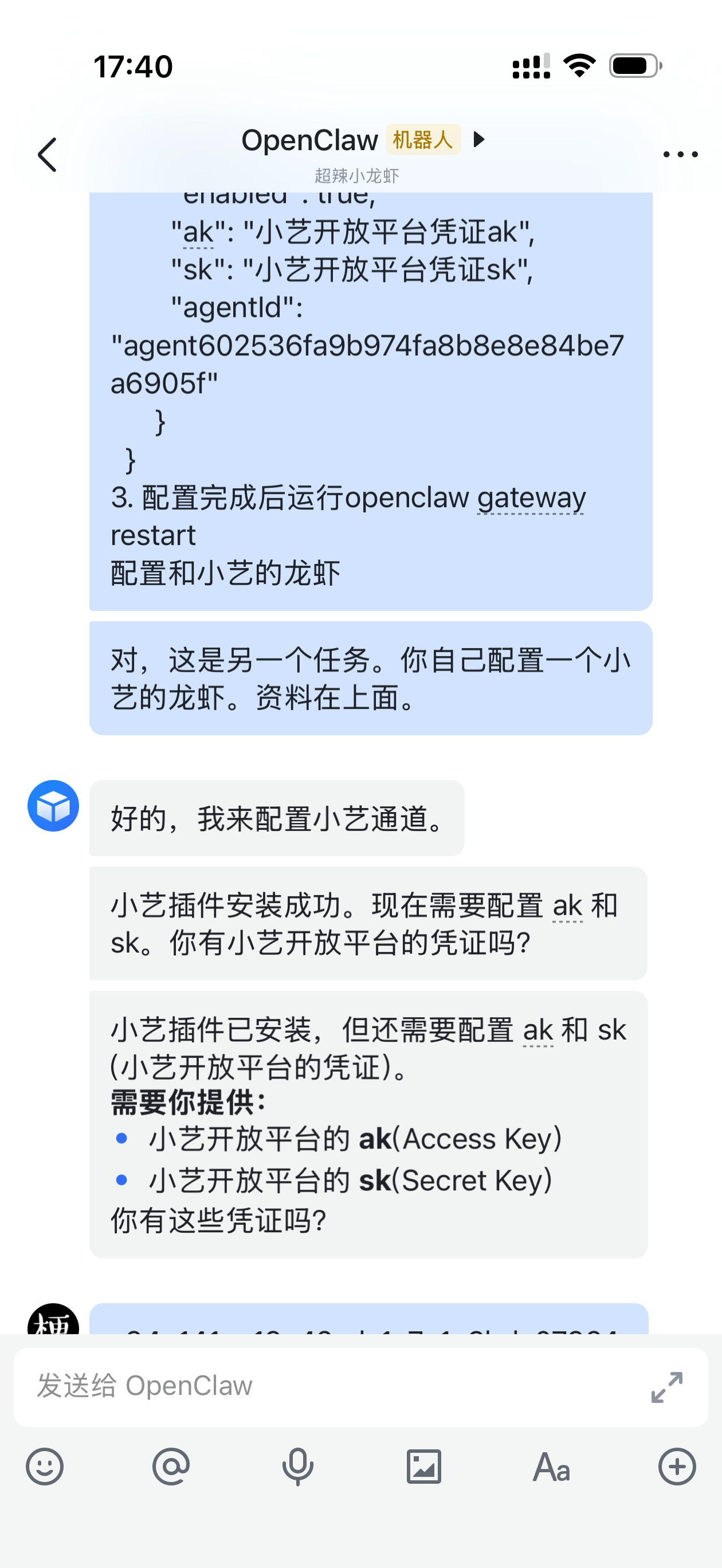 鸿蒙跟进太快了,现在Openclaw能接入小艺了,配置很简单,直接把相关内容发给龙虾,他就能自己配置。