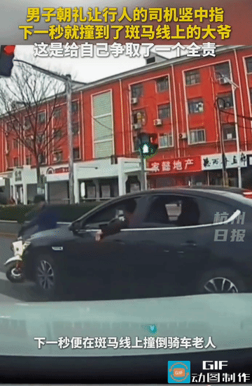 “恶有恶果!”上海,女子开车停在斑马线前,礼让行人,谁料,一开黑车男子从后面超车,还冲女子竖中指,骂骂咧咧说她堵路。仅一秒,男子撞上正在过斑马线的骑电动车的老人,老人受伤,车受损,这下男子赔大了。网友:老人是个善良的人,他没躺下,你就庆幸吧! 人在路上一定要遵守规则,千万别狂,因为人狂必有祸,下面说的这个男子就是这种人,狂大了,出事了。 据杭州日报3月9日报道,近日上海一街头,一女子开车要经过斑马线,看到有人骑着三轮车要过马路,她便停下车礼让行人。 与此同时,斑马线有走路的行人,有骑摩托的,还有骑着三轮车的大叔,都在有条不紊的过马路。 谁也没想到,就在这时,一名开着黑色轿车的男子从女子车后面超车,直奔斑马线欲通过。 更让人意外的是,男子竟然摇下车窗,伸出手对着女子竖中指,骂骂咧咧说女子堵路了。 女子这边还没等来的及反应呢,接下来的一幕让她瞬间消气了。 因为男子只顾着发泄情绪,冲女子竖中指,却没有注意到前方斑马线有一个老人骑着电动车经过。 好巧不巧,男子的车撞上了骑车的老人,一瞬间,电动车被压在了车轮底下,老人被撞的闪了一下,跳下车,却也受了伤。 这下男子偃旗息鼓了,狂傲的尽头也没了。 根据《道路交通安全法》第47条规定,机动车行经人行横道时,应当减速行驶;遇行人正在通过人行横道,应当停车让行。机动车行经没有交通信号的道路时,遇行人横过道路,应当避让。 法律明确规定了机动车在斑马线前得礼让行人,这是为了保障行人的安全,也是司机必须遵守的规矩。 在这件事里,黑色轿车司机不仅没做到礼让,还超车、竖中指骂人,完全忽视交通规则。 据了解,交警当场判定,黑车司机也就是男子负事故全责。而且,他还要承担被撞老人的医疗费,车辆维修费等赔偿。 有人说,大爷开心了,视频拍摄者开心了,我们开心了,交警开心了,谁不开心? 也有人说,男子算上幸运了,他这碰上好人了,被撞的老人一定是一个很好的老人,人家都没躺下。 还有人开玩笑说,大爷还是太老实,假如他躺下,头疼,头晕,任何医院都无法确证,协商2万,不协商车会被一直扣着,每七天去医院体验一次,光每天停车费就是120起步,拖他三个月,没有人会扛得住。 其实,男子也是自作自受,因为自己不守规矩,注意力全在发泄情绪上,对女司机作出侮辱性的手势,指责人家堵路,没注意前方情况,直接撞上了老人,这完全是自食恶果。 从情理上讲,大家在路上都得互相体谅。女子礼让行人,这是有素质、有公德心的表现,值得点赞。 而那男司机呢,太自我中心了,只图自己痛快,不顾他人安全。出了事,自己要赔钱不说,还伤了老人,多不划算。 所以说,在路上别太狂,得守规矩、讲公德。 多一份耐心,多一份理解,路走的才能更顺畅,大家也都能平平安安的。 要是都像那男司机似的,那路上不得乱成一锅粥,谁也别想好过。 最后想说,做人还是得低调点,遵守规则,才能少惹麻烦。 你对男子的行为怎么看呢?