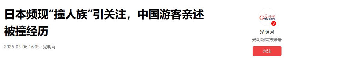 还敢去日本旅游?劝你赶紧买机票回国!这绝不是危言耸听。现在的日本街头,正潜伏着一群专门盯着中国人下手的“撞人族”。他们看似不经意的一撞,其实是要命的袭击。到底发生了什么? 就在3月4日,中国驻日使馆发出一道紧急安全提醒。直接点名防范日本街头的“撞人族”。官方用词极为严厉。 这说明事态已经到了刻不容缓的地步。这不是普通的治安问题,这是针对特定人群的暴力。 这帮“撞人族”专挑谁下手?外国游客、女性、老人、还有孩子。说白了,就是欺软怕硬。 他们看准了你人生地不熟。看准了你语言不通、急着赶行程。这就是彻头彻尾的蓄意袭击。 看看最近发生的案例吧。在东京涩谷,一对中国台湾母女好好过着马路。一个穿蓝衣服的日本女人恶狠狠地撞倒幼童,转头就跑。 2024年春节的东京站,王女士一家走在宽敞的大道上。照样被日本年轻女子径直恶意冲撞。 更令人发指的是暴力升级。去年7月在东京千代田区,两名中国男子惨遭四名日本人用铁管爆头。 凶手极其狡猾,提前破坏监控,作案后驾车逃逸。受害者被打成重伤。在北海道札幌,还有香港居民被啤酒瓶爆头。 连带团的中国导游都未能幸免。在车站直接被日本男子掐住脖子、恶意推搡。 这哪里是文明国家能发生的事?这分明是暴徒在光天化日之下行凶。中国人在日本,已经成了被重点盯防的“重灾区”。 数据不会撒谎。2024年日本全年针对外国人的暴力犯罪高达4328起。其中华人受害者占比超过35%。 这就说明,每三个遇袭的外国人里,就有一个是中国人。 民间调查的结果更让人揪心。在东京和大阪这些热门城市,14%的受访者遭遇过恶意冲撞。外国游客更是占了62%。 东京的涩谷、池袋、千代田,大阪的心斋桥、道顿堀。这些原本繁华的商圈,现在成了犯罪温床。 为什么他们敢这么猖狂?因为犯罪成本太低了!这类案件的立案率竟然不足5%。超过76%的案件,被日本警方以证据不足或肇事者逃逸为由,轻描淡写地归为“意外”。 更让人痛心的是我们同胞的沉默。超过80%的华人受害者选择了忍气吞声。语言不通、怕惹麻烦,成了最大的软肋。 这反而助长了施暴者的嚣张气焰。甚至演变成了敲诈勒索。有中国留学生在涩谷硬生生被讹了70万日元。 这背后的深层原因到底是什么?宏观来看,日本右翼势力一直在疯狂煽动对立情绪。日本社会对华不友好的态度日益加剧。 社会矛盾激化,他们就把怨气撒在普通华人身上。这是极其懦弱且卑劣的行为。 从微观心理剖析,这帮施暴者多是生活中的失败者。长期被打压,工作生活极度压抑。心理扭曲到了极点。 只能靠恶意冲撞弱者来发泄情绪。专门盯着看手机的人、老弱病残下手。这是典型的反社会人格。 面对这种恶劣环境,使馆给出了“防范三原则”。保持距离提高警惕,冷静应对立刻报警,确认伤情考虑索赔。 中方已经多次向日本外务省提出严正交涉。要求切实保护在日中国公民的安全和合法权益。 我们必须丢掉幻想,认清现实。这绝不是什么“小乱象”。这是有预谋的、针对华人的恶意暴力袭击。在日华人绝对不能再抱有任何侥幸心理。危险就在身边。 安全永远是第一位的。强烈呼吁,能提前结束行程的游客,赶紧买票回家。能提前结束学业的留学生,尽早回国。远离这些危险区域,才是对自己和家人最大的负责。君子不立危墙之下。 如果真的遭遇了冲撞,绝不能再低头认怂!必须彻底改变弱者姿态。当场拍照留证,立刻标记周围监控。 死死抓住施暴者,马上报警。你不发声,恶人就会得寸进尺。积极维权,是保护自己的唯一武器。 从自身做起,不给这帮暴徒留下任何蓄意挑衅的借口。保护好自己,平安归来,才是硬道理。
