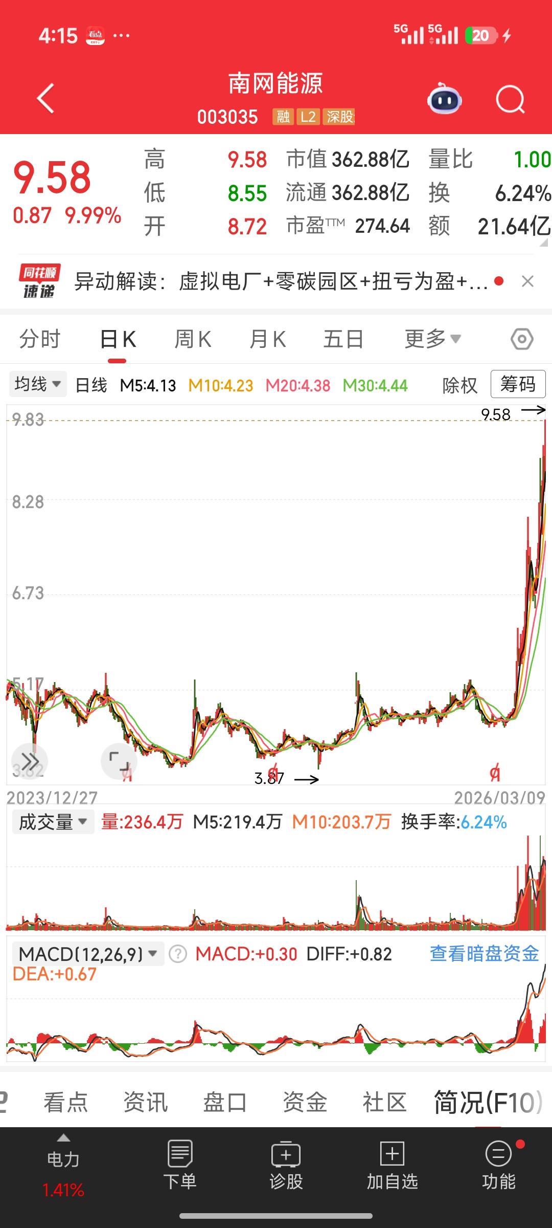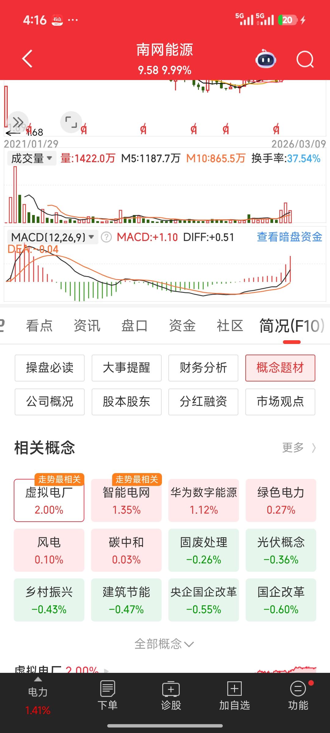 又错失了一只好股,南网能源近一月再度翻倍。为何自选股里,买入的股票涨势迟缓,甚至还陷入套牢困境,而那些没买的,回头再看已然涨幅翻倍。这究竟是何种状况,又有什么逻辑可言呢? 朋友们,你们是否也碰到过这样的情况呢? 智能电网概念股 网智股份 电网股 能源电气  广西南网能源 南网集团 离网能源