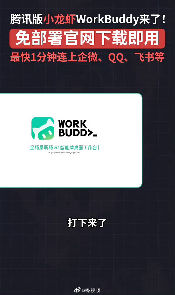 腾讯版小龙虾上线 从1—100,鹅厂真的太快了。 WorkBuddy主打免部署、易上手的AI办公体验。