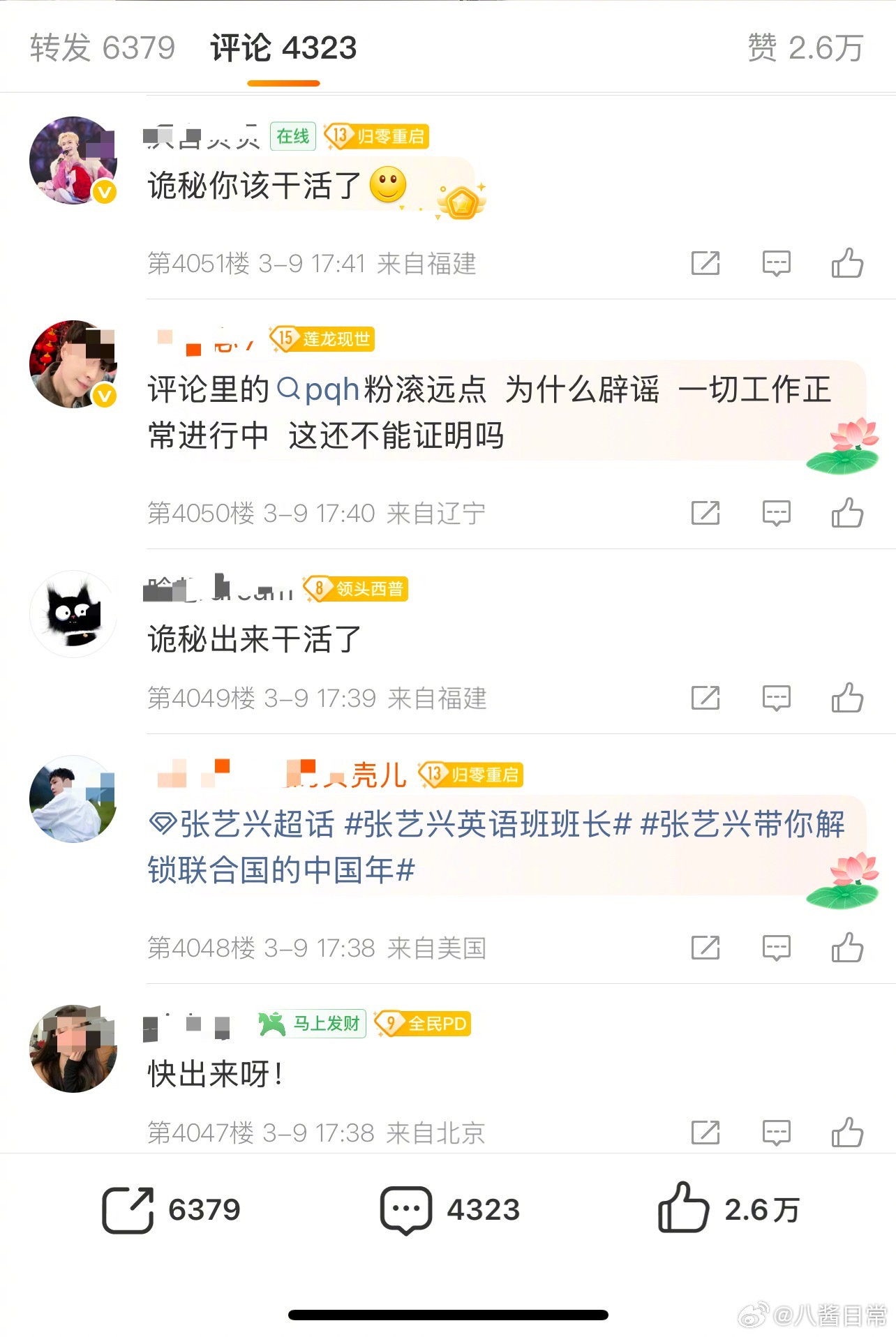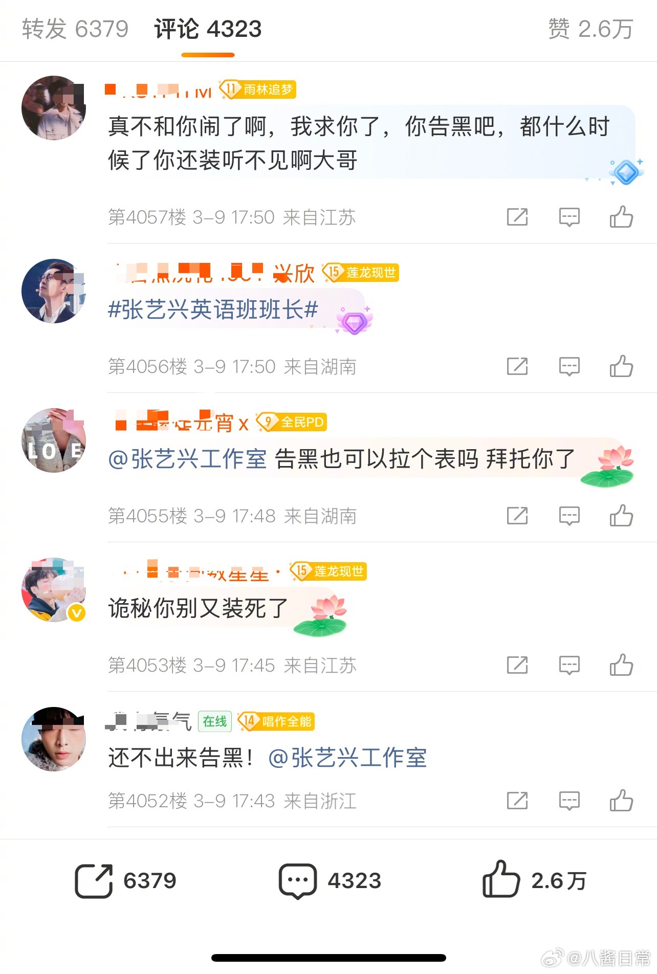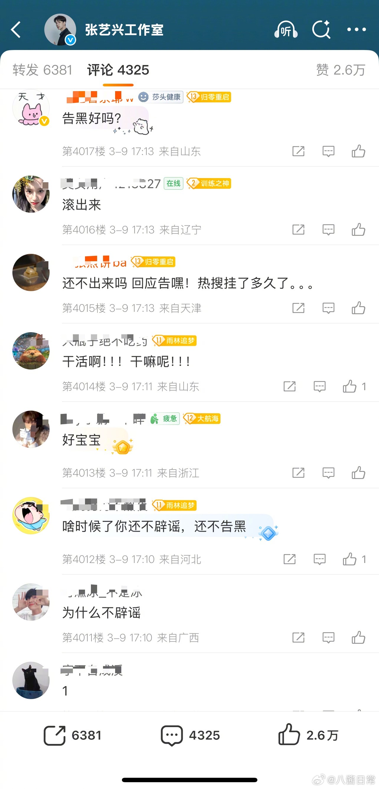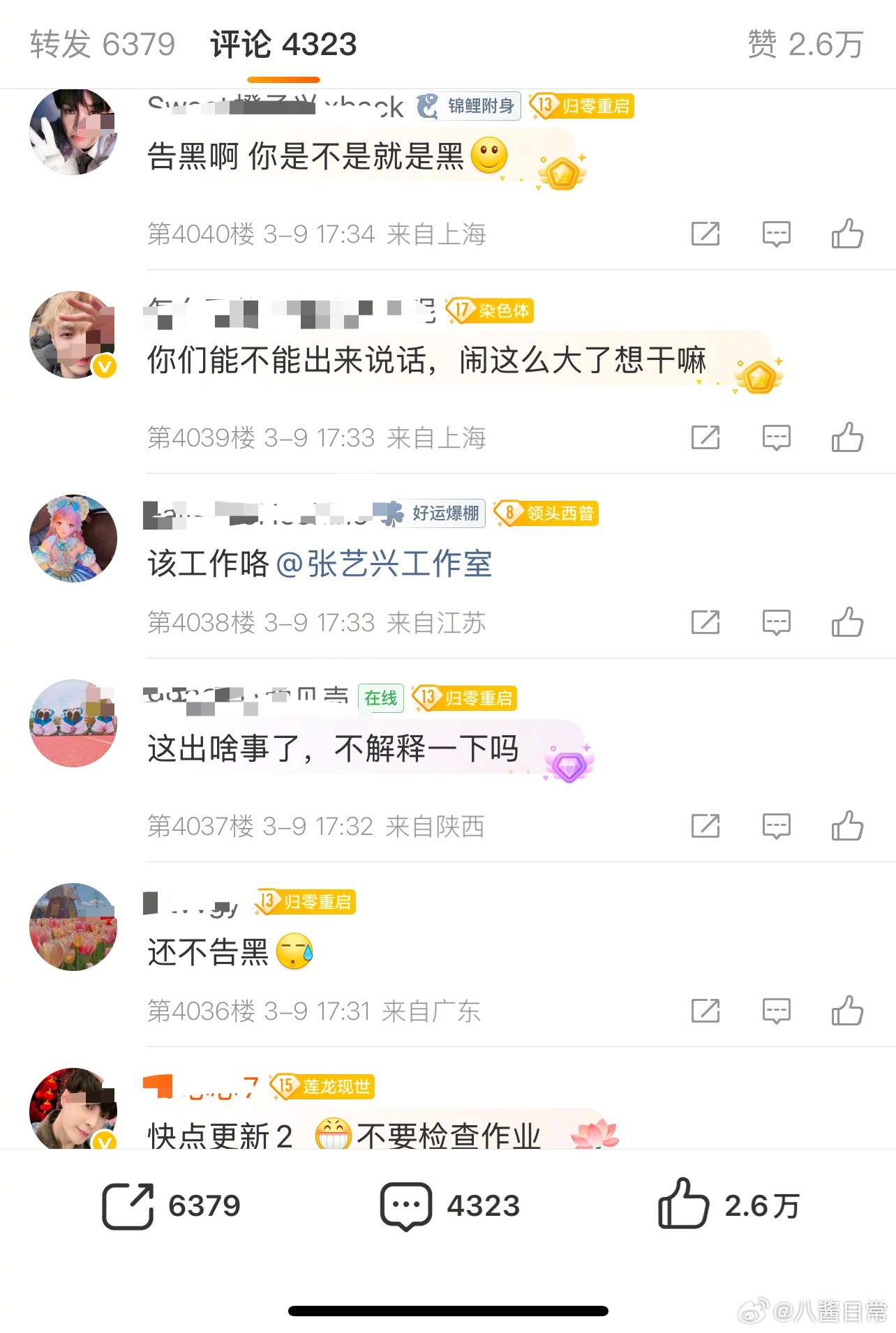 热搜挂一天了,张艺兴工作室评论区都是粉丝让工作室赶紧辟谣