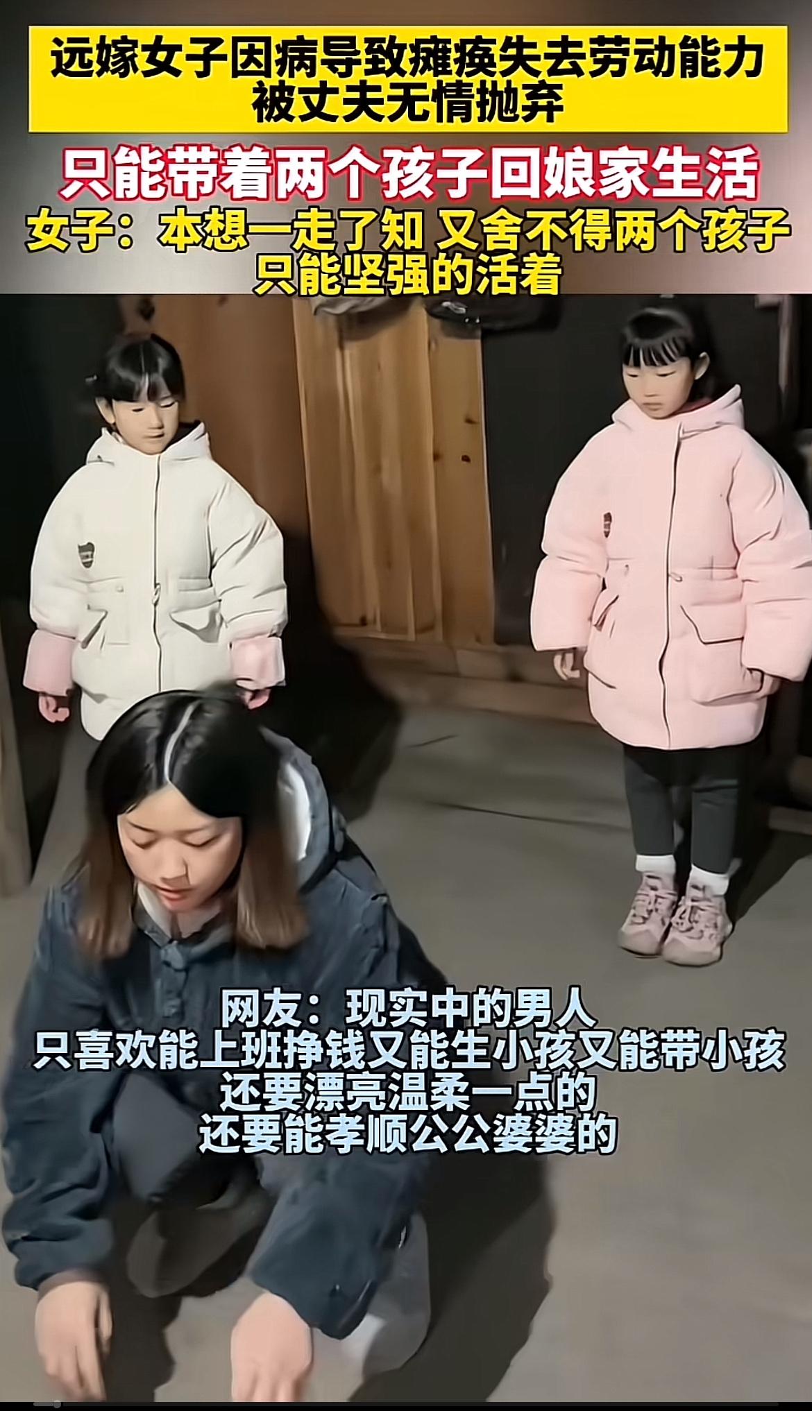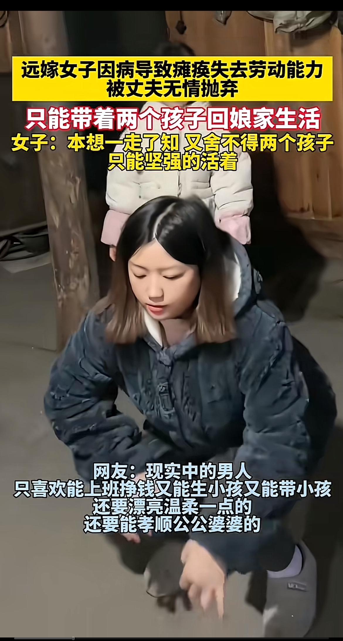 远嫁女子因病瘫痪,就被丈夫无情抛弃,这真的让人感到心寒。女子失去劳动能力,只能带着俩孩子回娘家,独自面对生活的艰难。 后来女子在娘家病情好转,能上班了,前夫却又想复婚,还拿孩子当借口,这种行为太让人不齿。好在女子重新找到了对她好的家庭,开启新生活。 现实中,很多女性在遭遇困境时被无情对待,像邻居女儿生病婆家不管。但也有幸运的,比如有人患癌,老公和婆婆不离不弃。希望每个女性都能被生活善待,远离那些薄情之人。