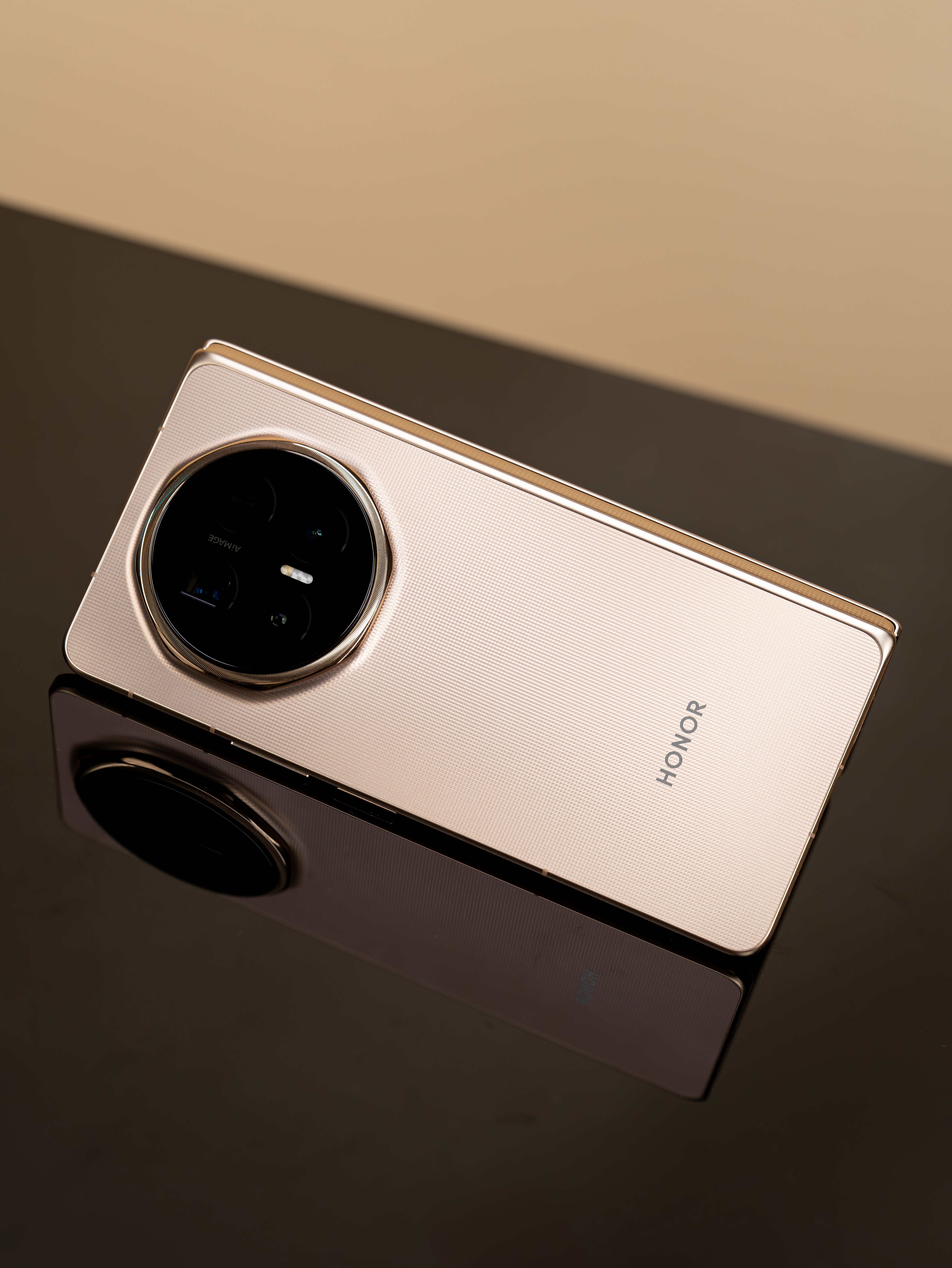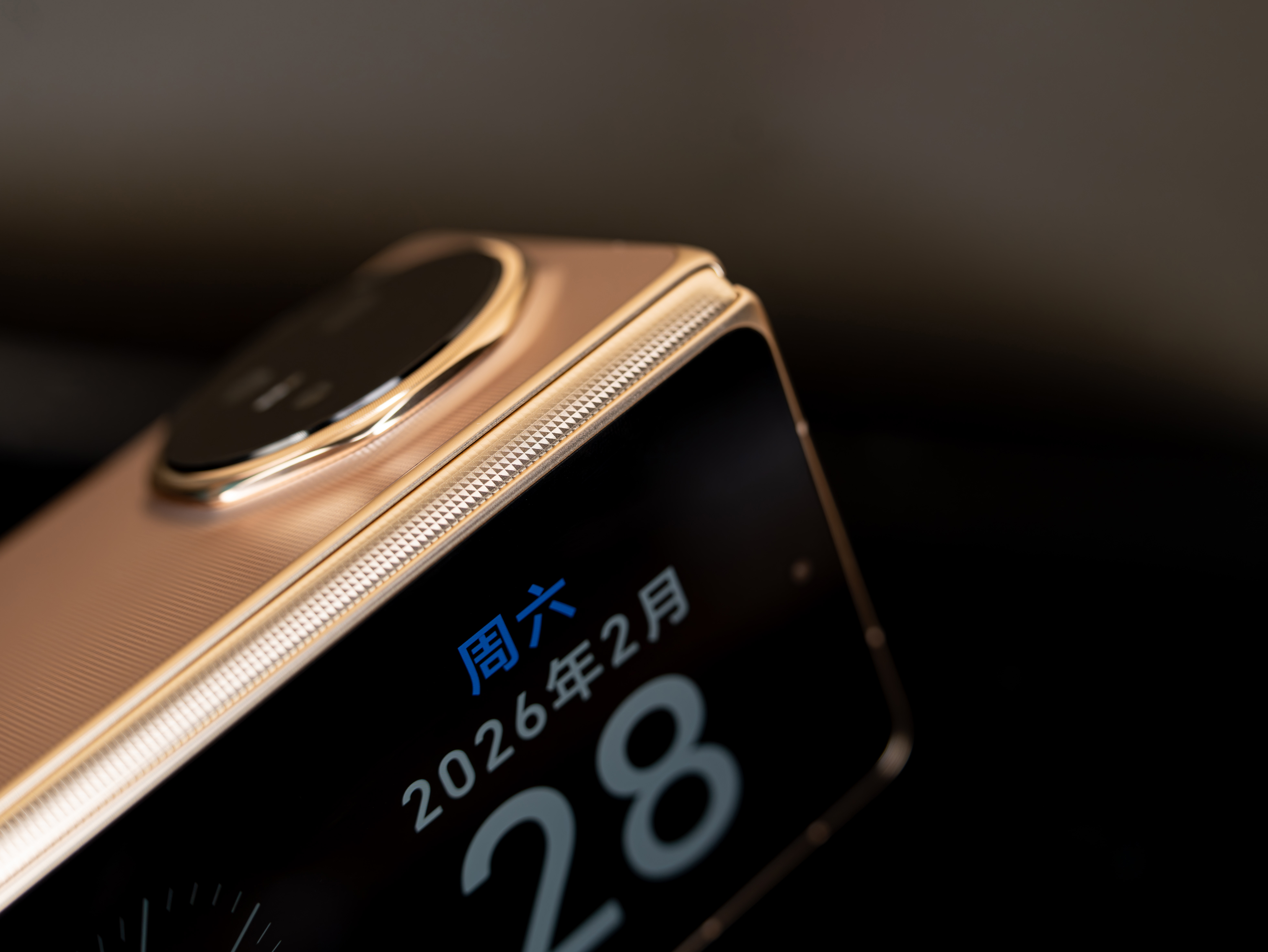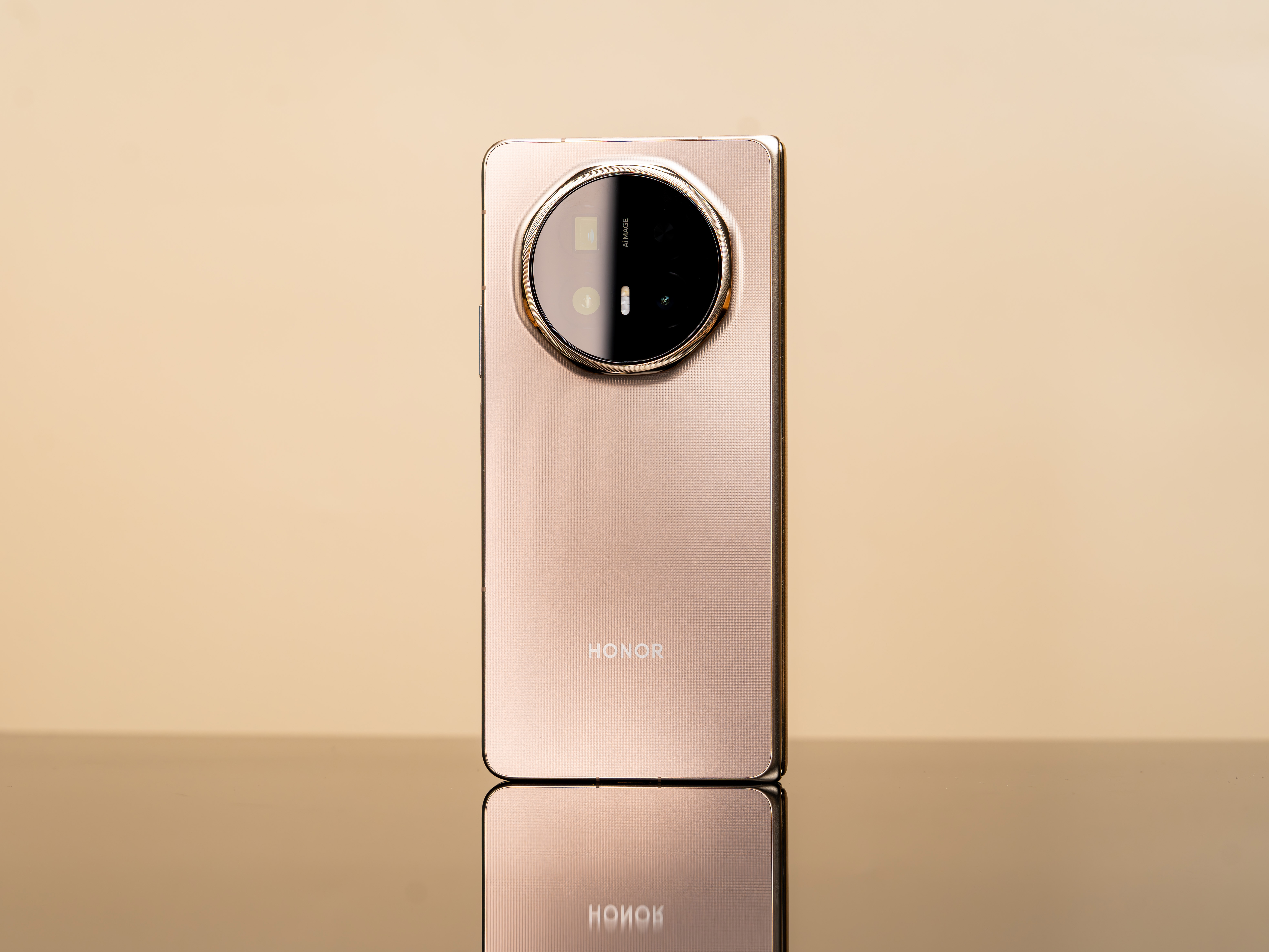 荣耀Magic V6每个颜色都好看,但旭日金最显商务。背面的格子纹理看着有质感,摸起来还特别丝滑。