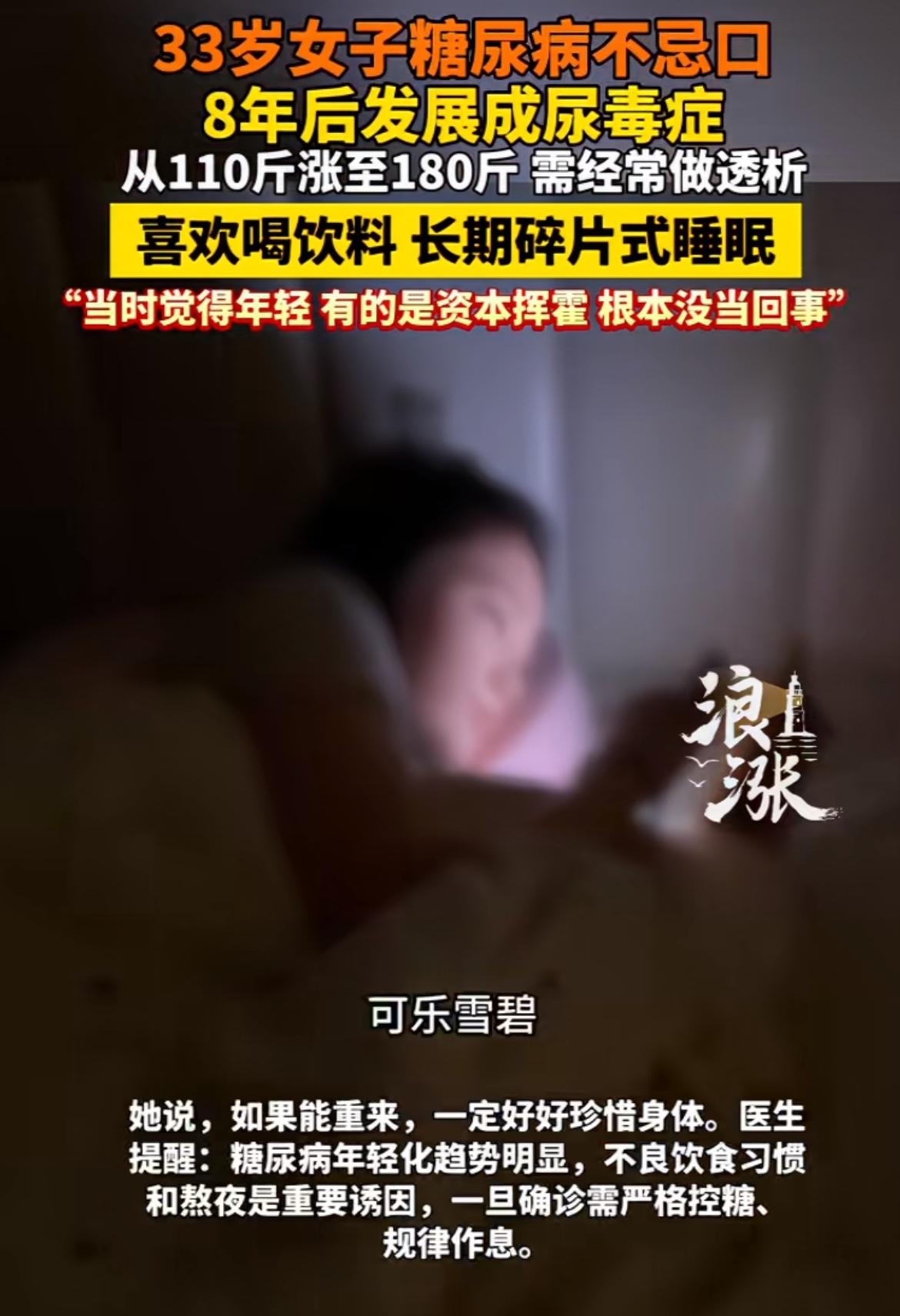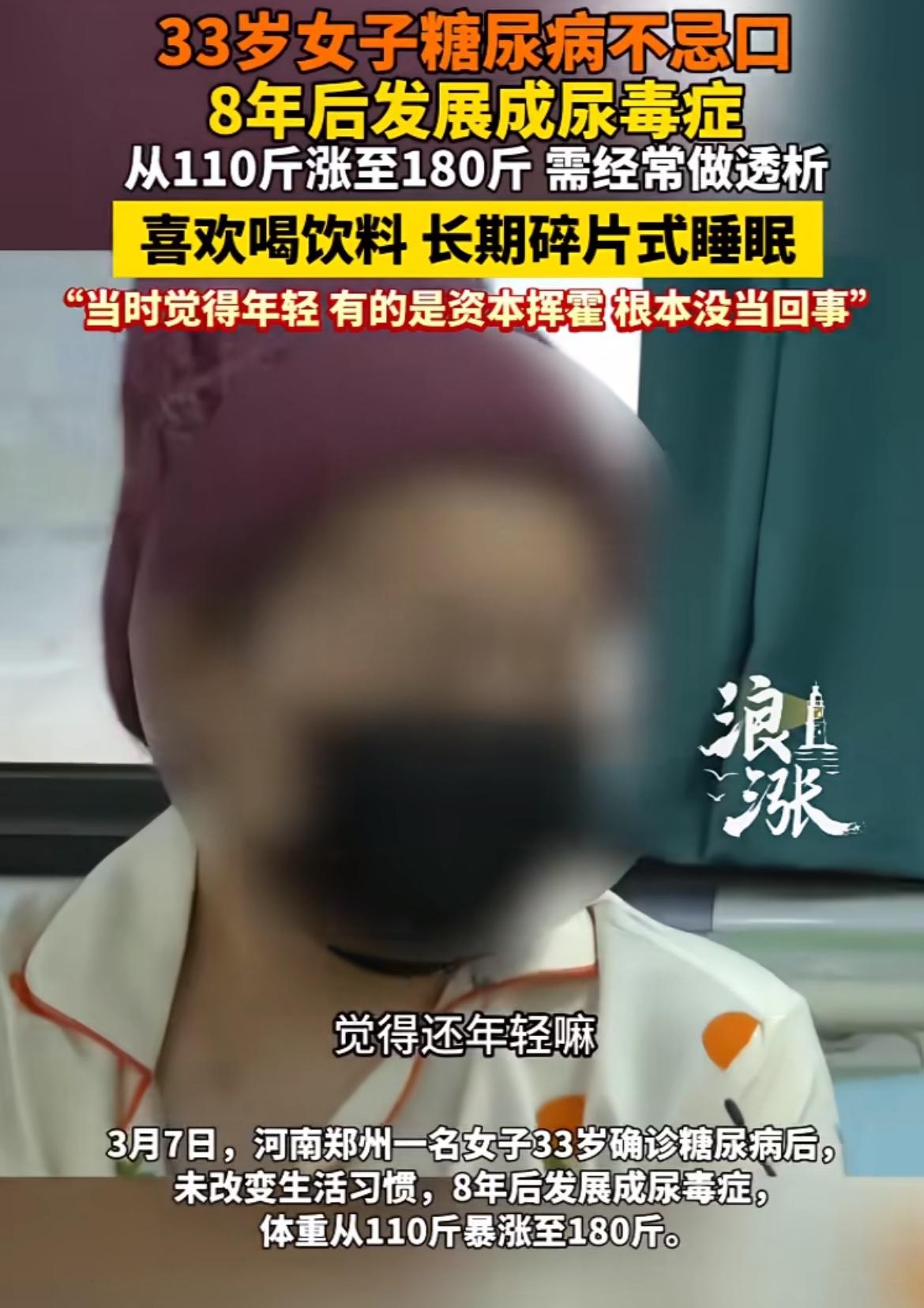 糖尿病不注意,真会出大事!河南33岁女子确诊糖尿病后不忌口,8年就发展成尿毒症,体重从110斤涨到180斤。她爱喝可乐等饮料,还长期碎片式睡眠,觉得年轻能挥霍。现在她得经常透析,身体严重水肿。 很多人错把药物当“万能钥匙”,饮食不节制;只信“身体感觉”,不信检查;只盯血糖,忽略其他指标。其实,真正科学管理要抓住“药物、饮食、监测”黄金三角。饮食可用“手掌法则”,运动每周150分钟加抗阻训练,监测别只查血糖,每月查次尿微量白蛋白/肌酐比值。大家一定要重视糖尿病,别等出问题才后悔。