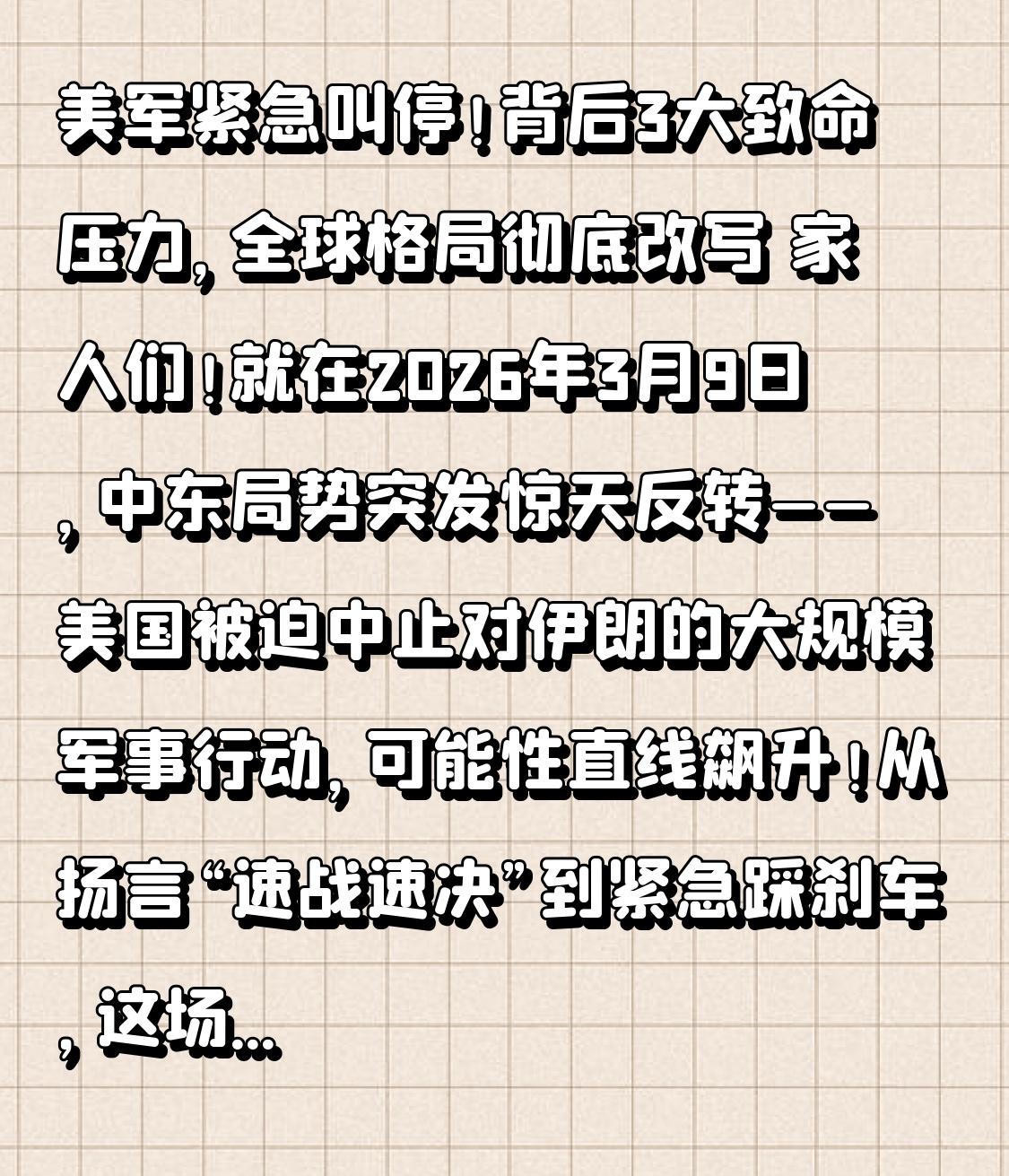 美军紧急叫停!背后3大致命压力,全球格局彻底改写 家人们!就在2026年3月