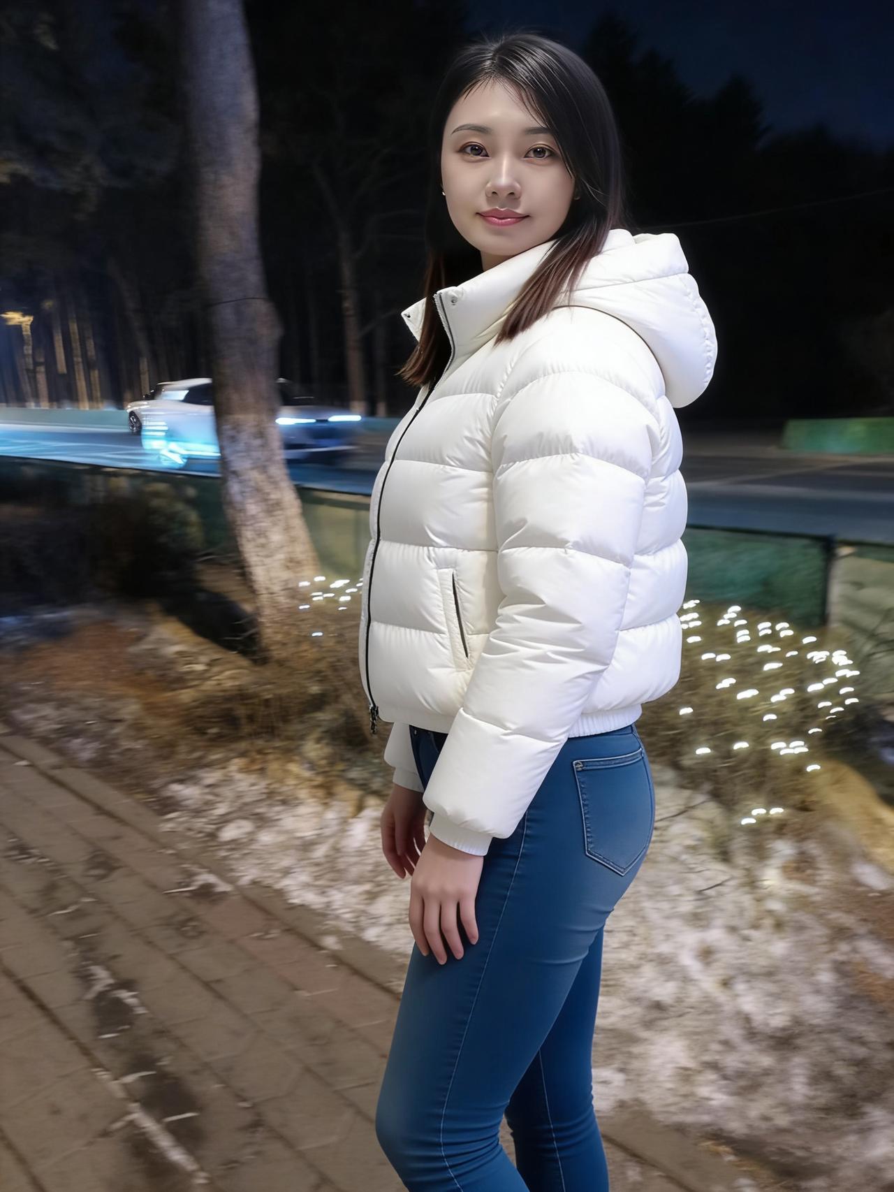 雪把大地揉成柔软的宣纸 树桠是蘸了墨的笔,斜斜划开暮色 白羽绒服垂落的褶皱 是未
