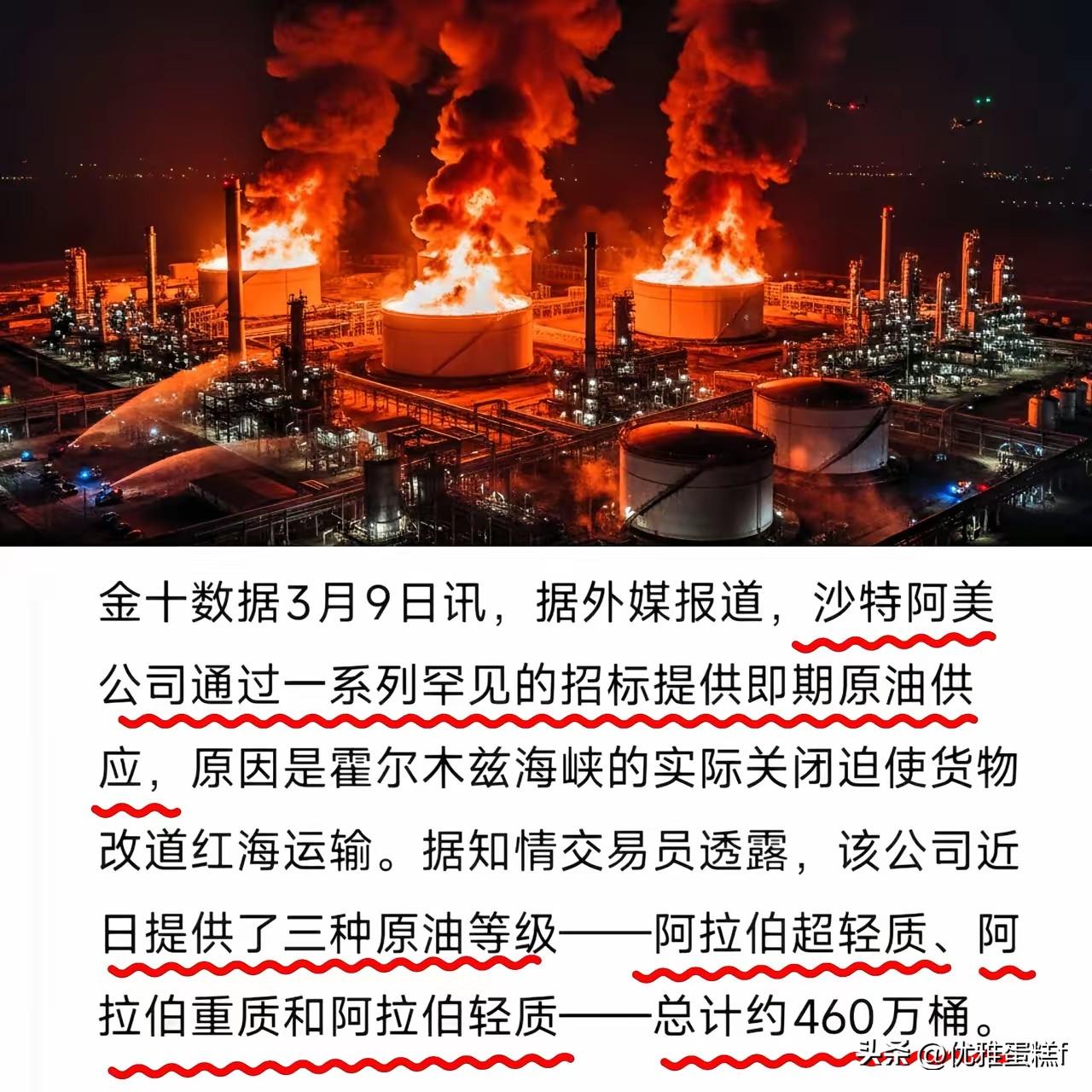 这个有点意思! 沙特阿美破天荒搞原油现货招标 简单说,就是全球油老大突然改规矩了。 以前都是签长约,客户固定、价格锁定,跟咱交水电费差不多。 现在招标,可以理解成拍卖,460万桶摆那,超轻、重质、旗舰轻质三大品类,谁出价高谁拿走,就是菜市场喊价! 现在沙特没办法,只能把东部油田的油,通过1200公里管道,绕到红海延布港出货。 这次价格,比3月官方售价还高。 现在这个溢价,可以理解成就是战火的“过路费”。 接下来 一是海峡啥时候通 二是沙特西线管道能不能扛住这种“极限输出”。 前者决定地缘风险还在不在,后者决定沙特还能不能稳住供应。 大老板都开始上闲鱼卖货了,说明行情是真急了。而这一系列变化,在全球原油市场上掀起了不小的波澜。众多石油进口国纷纷紧张起来,重新评估自己的采购策略。那些原本依赖沙特长约供应的企业,不得不参与到这场激烈的招标竞争中,一时间,市场上的火药味十足。 对于一些中小石油企业来说,这无疑是一场巨大的挑战。他们没有雄厚的资金实力去参与高价竞拍,只能眼睁睁看着那些大型企业在招标中争得头破血流。一些企业甚至开始寻找其他替代的原油供应渠道,以应对沙特阿美这一突然的规则改变。 从国际政治角度看,沙特的这一举措也引起了各方的关注。美国等西方国家密切关注着沙特的动态,担心这会影响到全球能源市场的稳定。而中东其他产油国则在观望,思考是否要跟随沙特的脚步,调整自己的原油销售策略。 至于海峡何时能恢复通行,目前还充满了不确定性。地缘政治的博弈错综复杂,各方利益交织,战火的平息并非一朝一夕之事。沙特西线管道的“极限输出”能力也备受质疑,毕竟长期的高负荷运行可能会对管道造成损害,影响后续的供应稳定性。 这场原油现货招标就像一颗投入平静湖面的巨石,激起的涟漪还在不断扩散,未来全球原油市场究竟会走向何方,让我们拭目以待。
