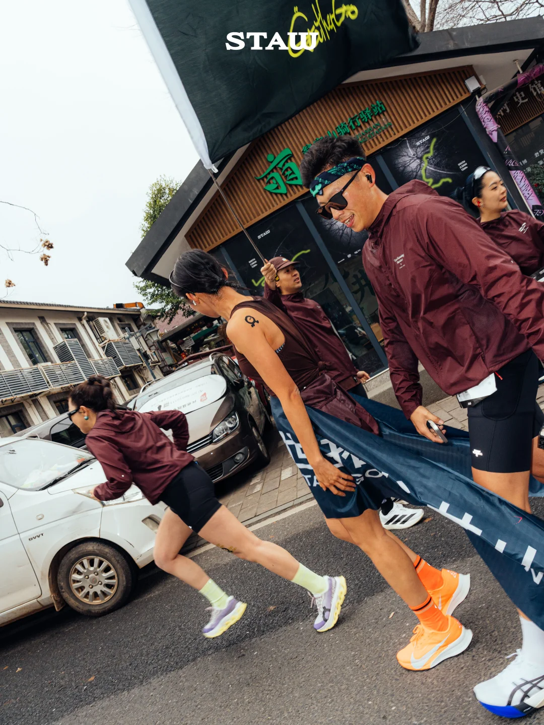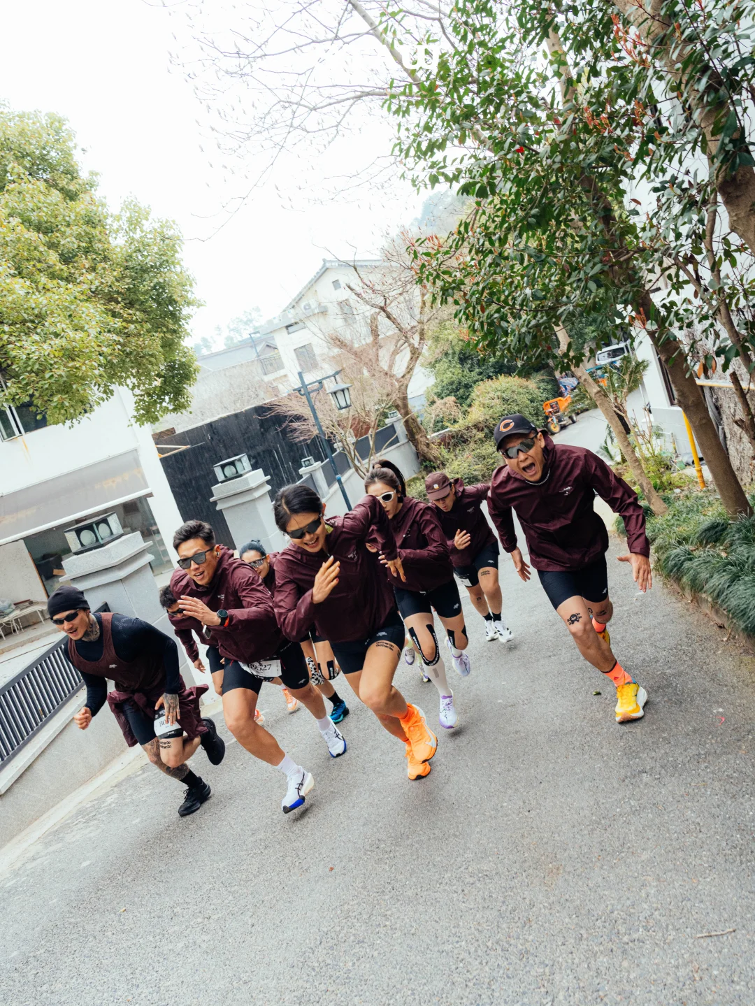 而是和这一群很久没见的朋友一起在山里接力跑。