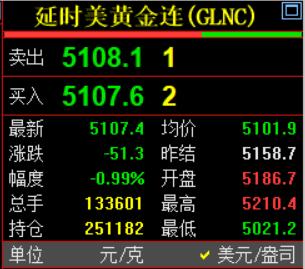刚刚凌晨的钟声敲响了, 习惯性看眼国际金价走势。 国际金价报价5107.4美元, 较上一日下跌51.3美金。 虽然仍处于回调中, 但是已经回到五千一百美元上方。 期货小褚认为震荡运行, 继续关注下方支撑情况比较好!