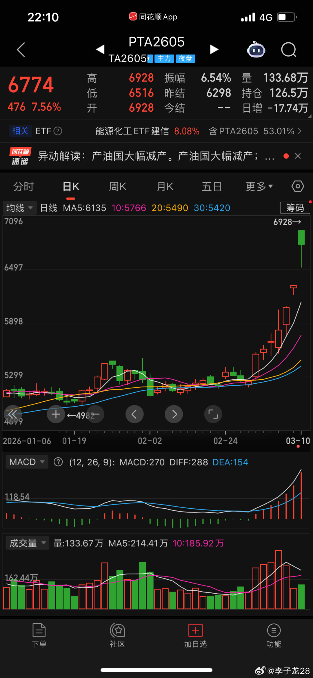 休息了,告一段落,我不再关注化工。pta达成意图6500+原油95。