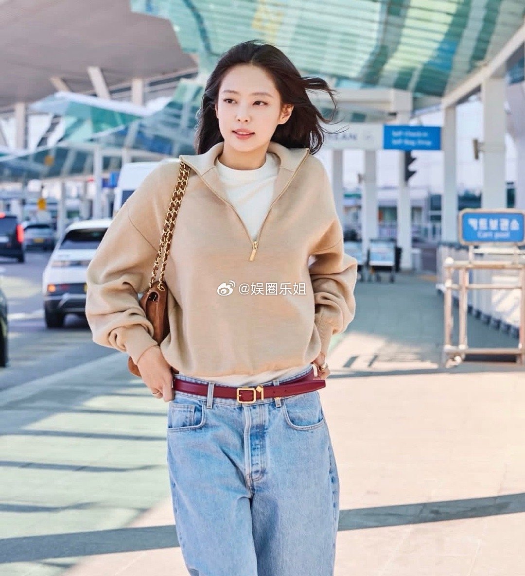 Jennie出发巴黎!为出席今晚的CHANEL大秀,她从首尔机场开始的造型已经满分上线,身穿2026高级手工坊系列开场Look,驼色拉链针织衫叠搭低腰直筒牛仔裤,酒红皮带勾勒腰线,棕色麂皮包随性一背,又酷又飒,直接把机场变成个人秀场!