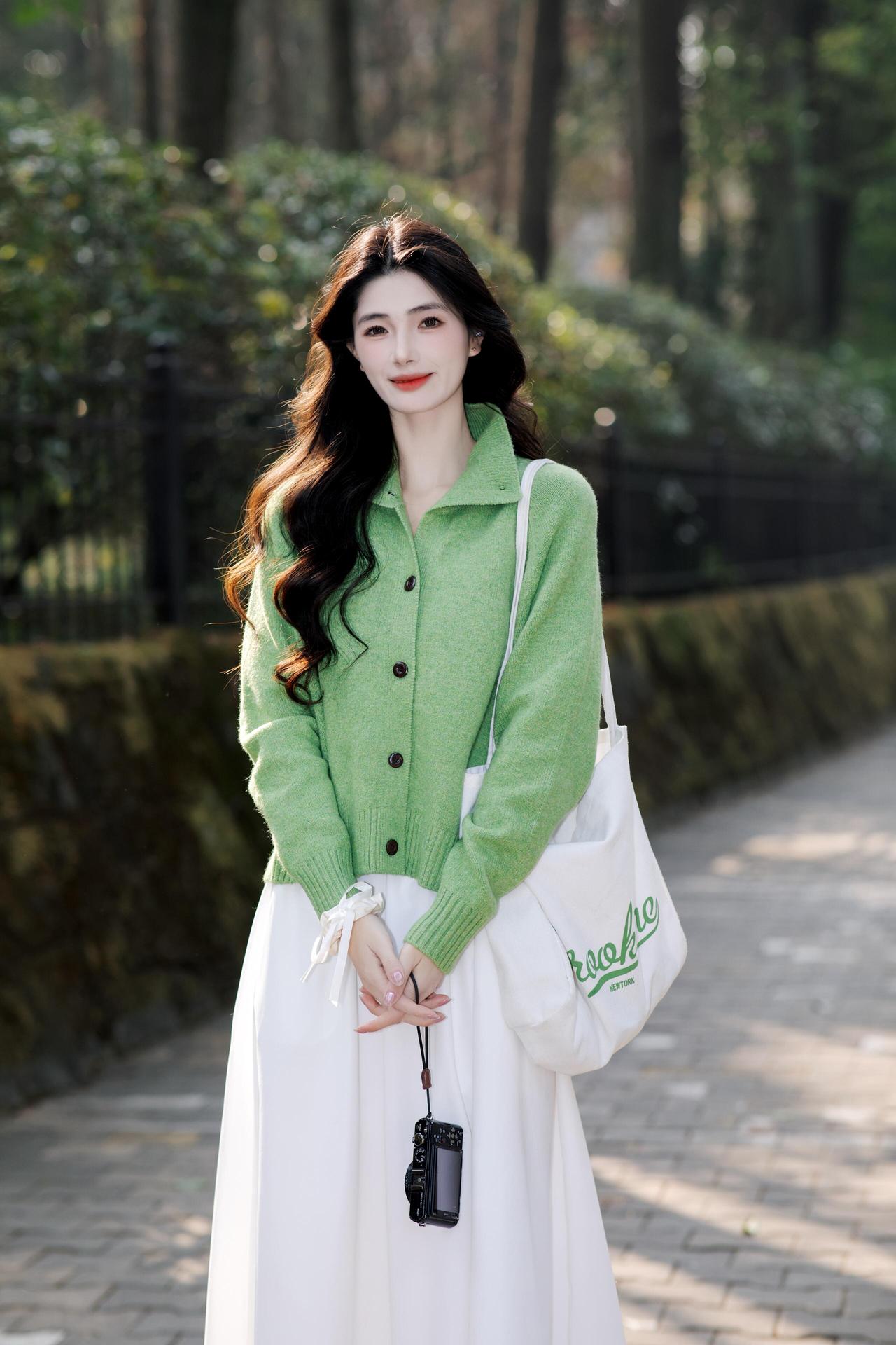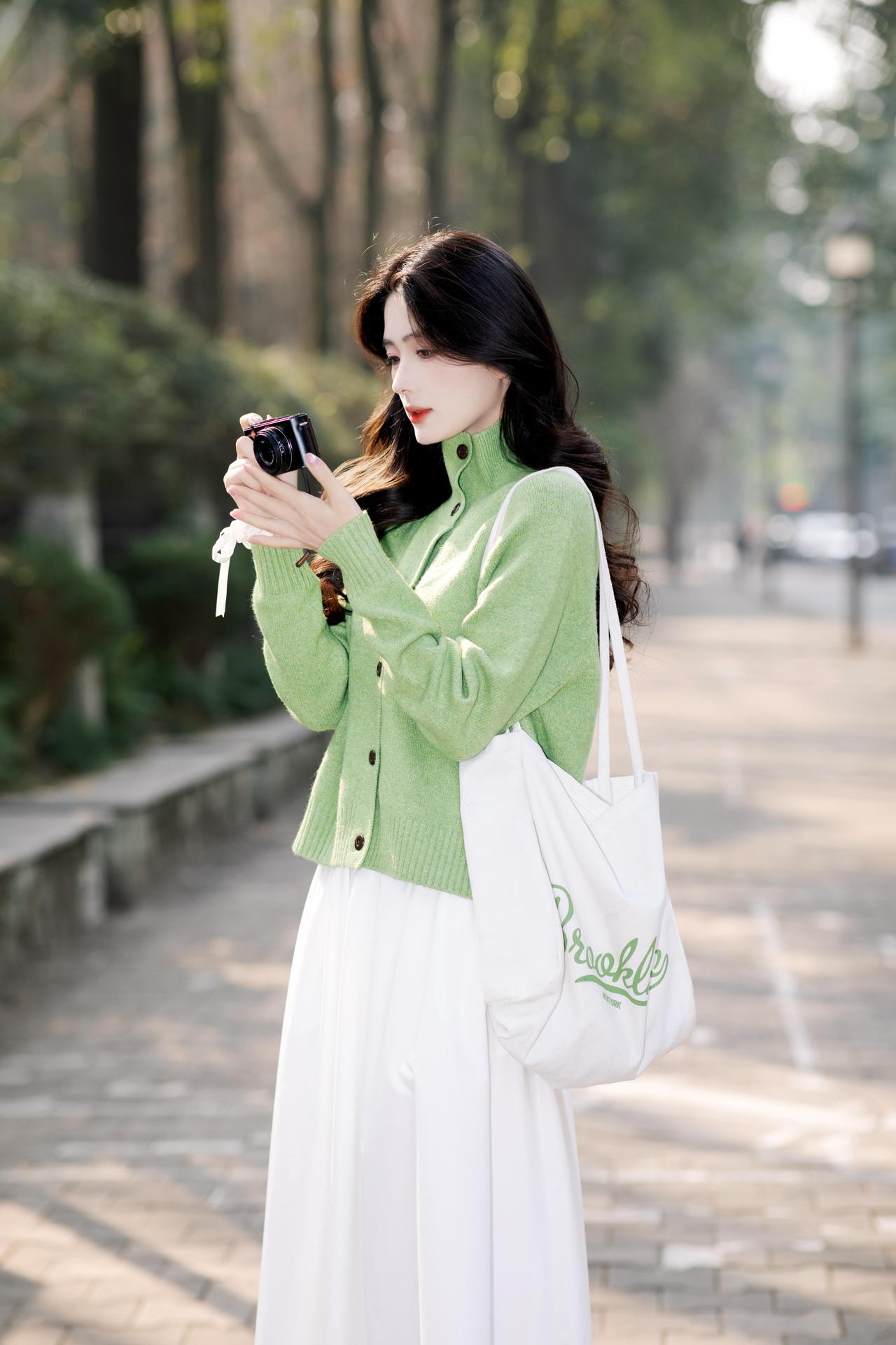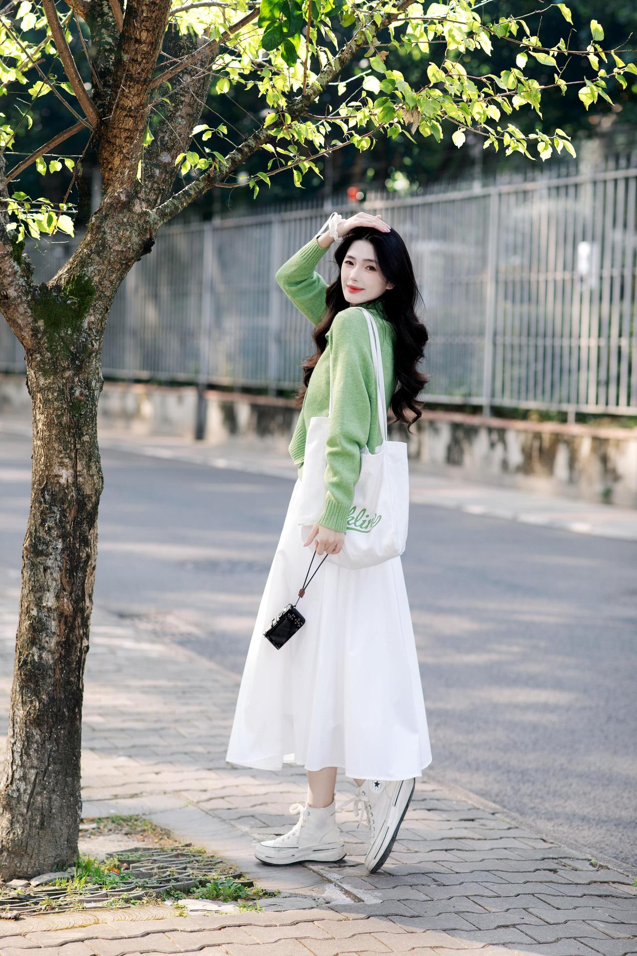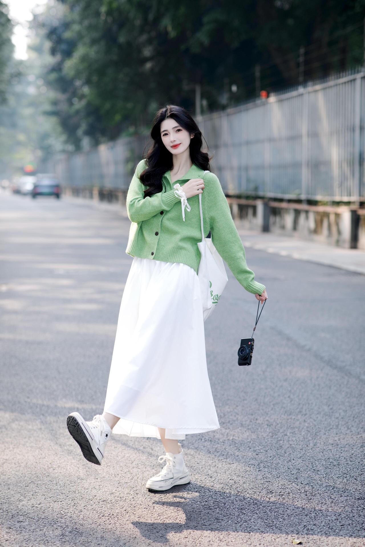 秋日穿搭指南灰色毛衣+白色手袋时尚又温暖灰色毛衣裙穿搭