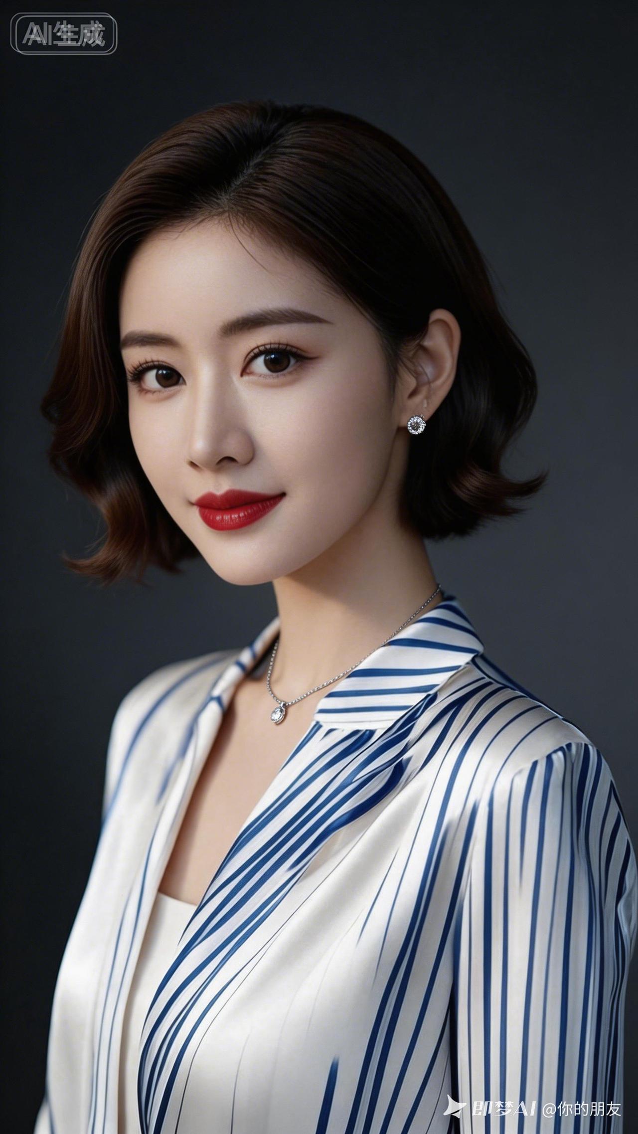 气质女老板身着时尚品牌服饰,搭配精致饰品,棕黑色微齐耳短发利落干练。大眼双眼皮,高鼻梁秀丽,高冷典雅,优雅高贵,绝美眼眸尽显高级风范。