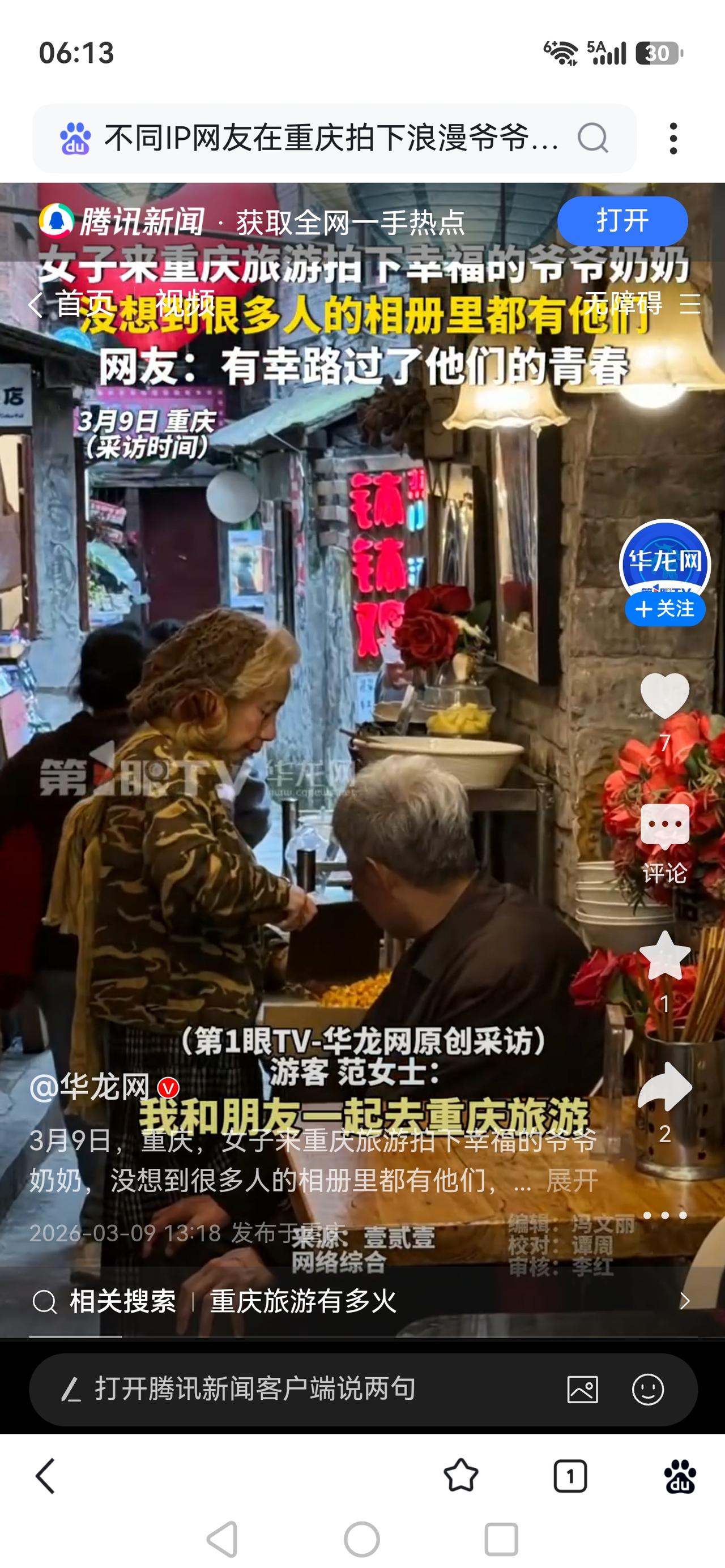全网刷屏!不同IP网友在重庆拍下浪漫爷爷奶奶:这才是爱情最真实的模样 最近,重庆一对爷爷奶奶的日常,被全国各地不同IP的网友随手拍下,瞬间刷屏全网。没有华丽告白,没有昂贵礼物,却让几百万年轻人红了眼眶。 这组画面爆火,本质是当代人对长久、踏实、不掺杂质的亲密关系极度渴望。快节奏时代里,快餐恋爱、分手常态让人疲惫,而老一辈风雨同舟、细节里藏温柔、一辈子只守一人的陪伴,恰好击中大众内心最柔软处,成为稀缺又治愈的精神慰藉。 看完这些视频,谁不破防?重庆的街头巷尾,总在上演最动人的人间真情。爷爷下意识牵起奶奶的手,过马路时护在身前,逛累了默默递水、耐心等候,没有甜言蜜语,一举一动全是宠溺。 他们用一生告诉我们:最好的爱情,不是轰轰烈烈的誓言,而是柴米油盐里的不离不弃,是白发苍苍时依然把你当成宝贝。现在很多年轻人谈婚论嫁,总盯着车子房子彩礼,却忘了最珍贵的是真心与陪伴。 这对爷爷奶奶,没有精致妆容,没有网红滤镜,却活出了爱情最美的样子。他们让我们相信,真心能抵岁月漫长,陪伴就是最长情的告白。 这才是我们向往的一生一世一双人。你羡慕这样的爱情吗?你身边有这样暖心的老人吗?评论区聊聊。热点话题 一生一世一双人 浪漫的爷爷奶奶