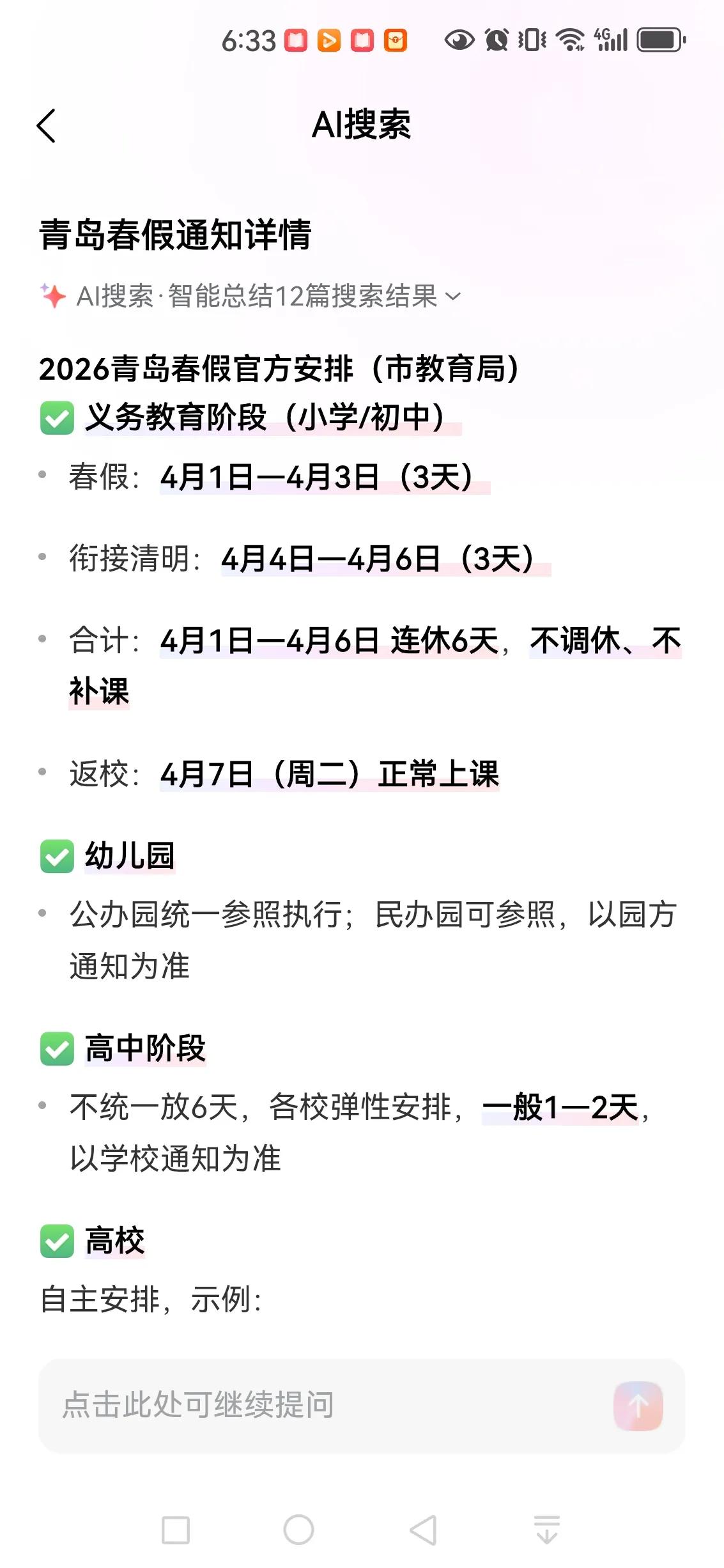 青岛竟然🈶春假? 真的要放春假吗?孩子们这学期本来已经是最短学期,如果再放假时间岂不是更紧张,目前都是一天一节新课,更本没有复习的时间,孩子压力山大呀。