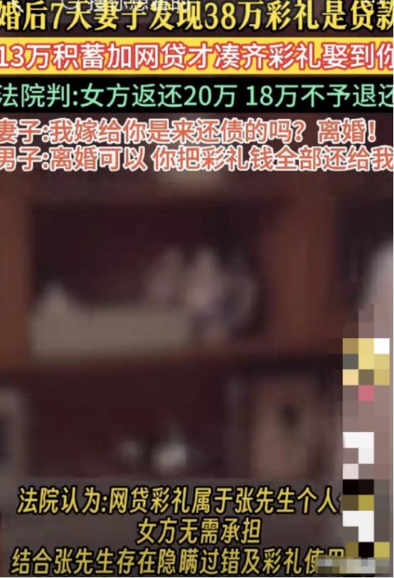 “这就是骗人的下场!”江苏南京,一女子结婚7天,丈夫以为生米已经煮成了熟饭,他得意洋洋告诉女子,38万彩礼是他13万积蓄+25贷款,他话风一转,要女子和他一起还贷款,女子被骗,又气又急:我嫁给你是来还债的吗?离婚!丈夫一听立马变脸:离婚可以,你把彩礼钱全部还给我!女子告到法院,判决令人意外! 三月的风还带着微凉,王芳婚房的玻璃窗上,大红喜字被阳光照得发亮。 茶几上的喜糖盒还没拆完,房间里的一切布置都停留在新婚的第七天。没人能想到,这份热气腾腾的喜庆,会在这天晚上被一叠冰冷的账单彻底浇灭。 林某坐在沙发边缘,指尖反复摩挲着手机屏幕,指节泛白。他把手机、纸质账单和转账截图依次铺到了床上,动作急促,账单上的数字密密麻麻,还款日期用红笔圈着,逾期提醒的字样格外刺眼。 王芳的目光从账单移到了林某脸上,心里的不安越来越重。她想起这七天里的种种异常:林某的手机常年静音,接电话时总往阳台跑,甚至洗澡都要把手机带进卫生间。 林某的指尖停在“38万”这个数字上,那是两家亲戚都称道的彩礼数额。他告诉王芳,十三万是他工作多年的积蓄,加上父母从养老钱里挤出的补贴。 剩下的二十五万,来自七个网络贷款平台,每一笔都标注着高额利息,还款期限最长的到了五年后。 更让王芳浑身发冷的是,林某把账单往她面前推了推,用动作表明了核心诉求。他认定两人已经是合法夫妻了,这笔婚前网贷该算作共同债务,需要一起承担。 王芳没有哭闹,只是沉默地坐着,直到林某的手势停下,她才起身走进卧室,打开衣柜最下层的抽屉,拿出了自己的证件包。她往包里塞了两套换洗衣物、洗漱用品,还有婚礼上拍的那张全家福。 走出卧室时,林某慌忙起身阻拦,王芳却脚步不停,径直拉开了房门。她没有回头,沿着楼道往下走,手里的包沉甸甸的,心里却异常清醒。 回到娘家,她把账单摊在了父母面前,母亲看到后难以置信的捂住了嘴,父亲的拳头砸在桌上,发出了沉闷的响声。 男方家人很快找上了门,先是低声劝说,见王芳态度坚决,语气渐渐强硬。林某站在人群后,眼神躲闪,直到被父母推到前面,才用动作表示,离婚可以,但三十八万彩礼必须全额退回,否则就不办手续。 协商陷入僵局,王芳的家人提交了离婚诉讼。庭审现场,法官逐一核对证据,节奏严谨。 银行流水和网贷合同显示,二十五万贷款均在领证前三天完成放款,收款账户是林某的个人账户,资金到账后当天就转给了王芳的父亲。 婚礼开销的票据也被一一质证,酒店酒席花费九万二,婚庆布置三万八,新房软装四万五,还有给亲友的伴手礼五千,合计十八万。这些消费都有正规发票,无法追回。 法官还调取了两人婚后的消费记录,七天里,他们的共同支出只有两千多,用于买菜、水电和一次短途购物,没有任何大额消费,更没有与网贷相关的支出记录。 最终的判决下来,法院认定二十五万网贷是林某婚前个人债务,王芳无需承担偿还责任。彩礼方面,十八万用于婚礼实际消费,不予返还,剩余二十万由王芳返还给林某。 判决生效当天,王芳的父亲通过银行转账,把二十万打到了法院指定账户。转账成功的提示音响起,王芳长长地舒了一口气。她删掉了林某的联系方式,把婚礼照片放进储物箱,重新整理了自己的生活。 林某则开始独自面对网贷压力,每个月的还款提醒短信塞满了手机。他卖掉了婚前买的汽车,又向父母借了钱,才勉强凑够前三个月的还款。当初那场热闹的婚礼,成了邻里间的谈资,也成了他心里的教训。 这场七天的婚姻,像一面镜子,照出了婚姻里最珍贵的东西。真诚永远比面子重要,坦荡才是过日子的根基。 脚踏实地的付出,才能撑起安稳的家庭,任何用欺骗搭建的幸福,终究会在现实面前轰然倒塌。