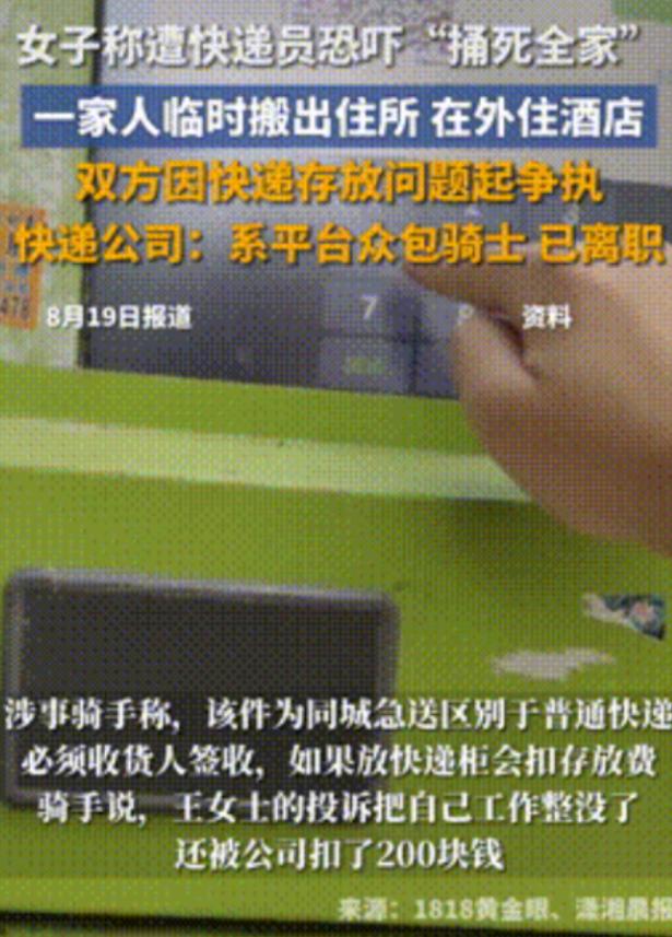 “人狂必遭灾!”浙江杭州,女子有一份重要文件快递,由于家中没人,女子要求骑手将文件投放在快递柜,可骑手却说,这份快递特殊,平台要求必须当面签收,不能投放快递柜,女子认为骑手不知变通,于是投诉骑手并出言辱骂,没想到却因此激怒骑手,骑手直接进行人身威胁,女子担心骑手报复,一家人躲进酒店不敢回家,事后要求快递公司赔偿19999元,快递公司:骑手已离职,且是顾客先出言辱骂骑手的。 事情发生在去年八月,这位女士的朋友给她寄了一份关乎孩子读书的重要文件,特意选了同城急送,就是怕耽误事。 当时她不在家,想着快递柜方便又安全,就跟上门派送的骑手说,把文件放进小区的丰巢柜里,她下班回来再取。 可骑手却犯了难,这份同城急送和普通快递不一样,平台要求必须当面签收,而且放进快递柜还要收费,每小时一块钱,他这一单的派送费也就十块钱,跑五公里路,要是放柜时间久了,等于这单白干。 他跟女士说明情况,还提出可以先放柜一小时,后续费用就没法承担了,可女士没同意。 女士觉得自己地址写的就是快递柜,骑手就是不知变通,明明自己不在家,还非要当面签收,纯属故意刁难。 加上文件重要,她怕放在柜顶够不到,也怕丢失,越想越生气,不仅当场投诉了骑手,还在电话里说了不少难听话,言语间满是指责和辱骂。 她以为投诉之后,骑手会服软,或者平台会给出合理处理,可没想到,这一举动彻底激怒了骑手。 骑手本来就觉得自己委屈,辛苦跑单还要被投诉罚款,一气之下就给女士打了电话,言语极端,甚至说出了恐吓的话,让女士瞬间慌了神。 女士今年四十多岁,说自己这辈子第一次听到这么可怕的恐吓,加上家里有孩子,担心骑手真的会上门报复,思来想去,干脆带着一家人收拾东西,躲进了酒店,一连住了好几天,连家都不敢回,白天上班也心神不宁,体重都瘦了三斤。 后来文件被骑手退回给了发件人,虽然最后顺利补办了,但女士觉得自己受了惊吓,还花了不少酒店费用,就向快递公司提出索赔,要求赔偿精神损失费、住宿费和误工费等共计19999元,可快递公司的回应,却让她更加生气。 快递公司表示,涉事骑手已经主动退出平台,相当于离职,而且根据双方的通话录音,是女士先出言辱骂骑手,才引发了后续的口角和威胁。 平台已经多次尝试调解,但双方始终无法达成一致,对于她提出的索赔金额,也无法满足,只曾提出送一张十二元的同城券作为补偿。 这件事被分享到网上后,网友们的评论分成了两派,有人觉得骑手不该用恐吓的方式解决问题,哪怕再委屈,也不能威胁别人的人身安全,丢工作也是自食其果。 不过也有人觉得女士太矫情,明知是同城急送需要当面签收,还强人所难,辱骂骑手在先,索赔近两万也不合理。 其实仔细想想,这件事本可以避免,骑手多一点耐心解释,女士多一点体谅包容,各退一步,就不会闹到这般地步。 一份快递,毁掉了骑手的工作,让女士一家饱受惊吓,说到底,还是冲动惹的祸,也给所有人提了个醒,遇事别较劲,互相体谅,才能避免不必要的麻烦。