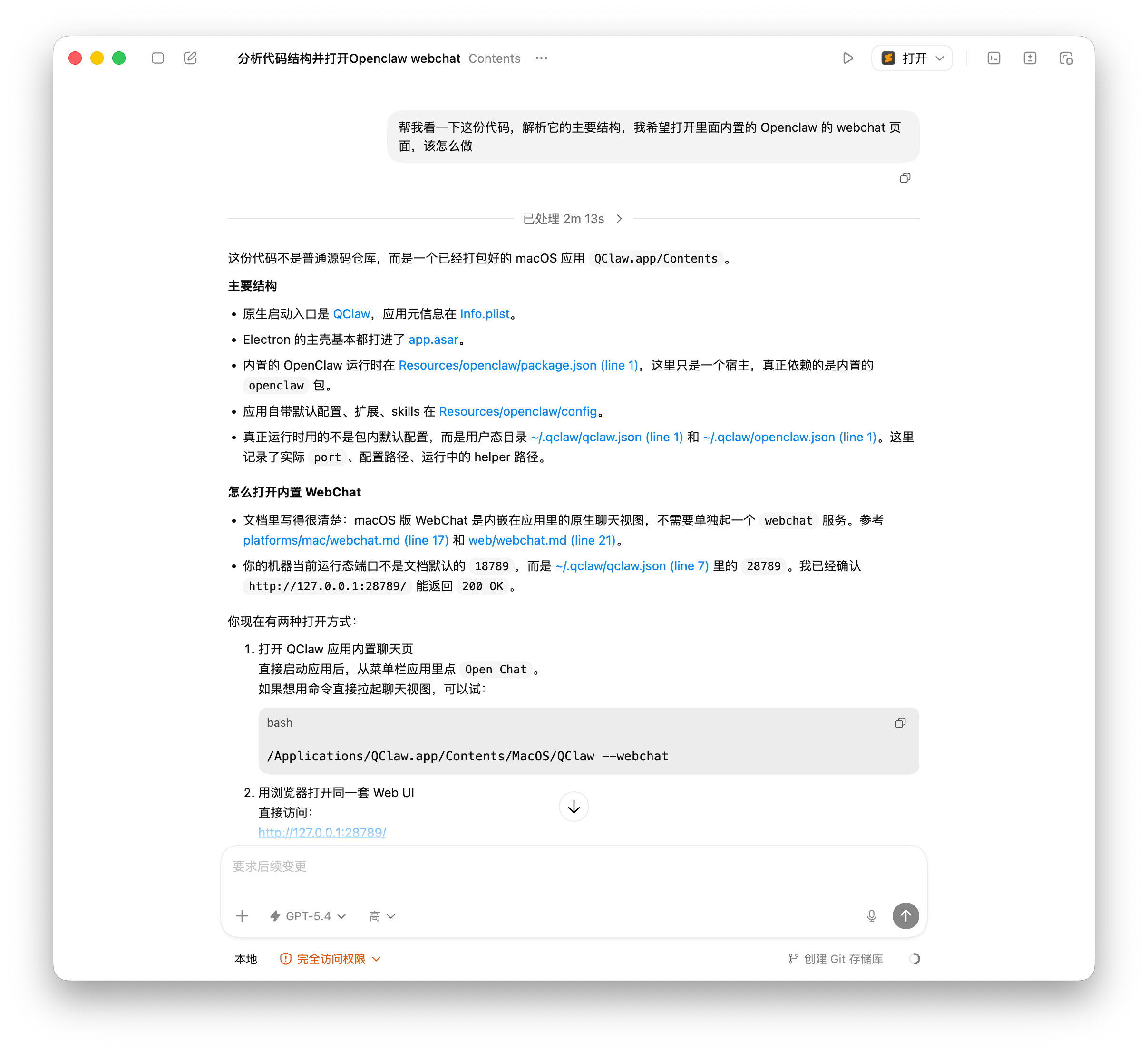 让 ChatGPT 的 Codex 研究了一下 QClaw的程序包。