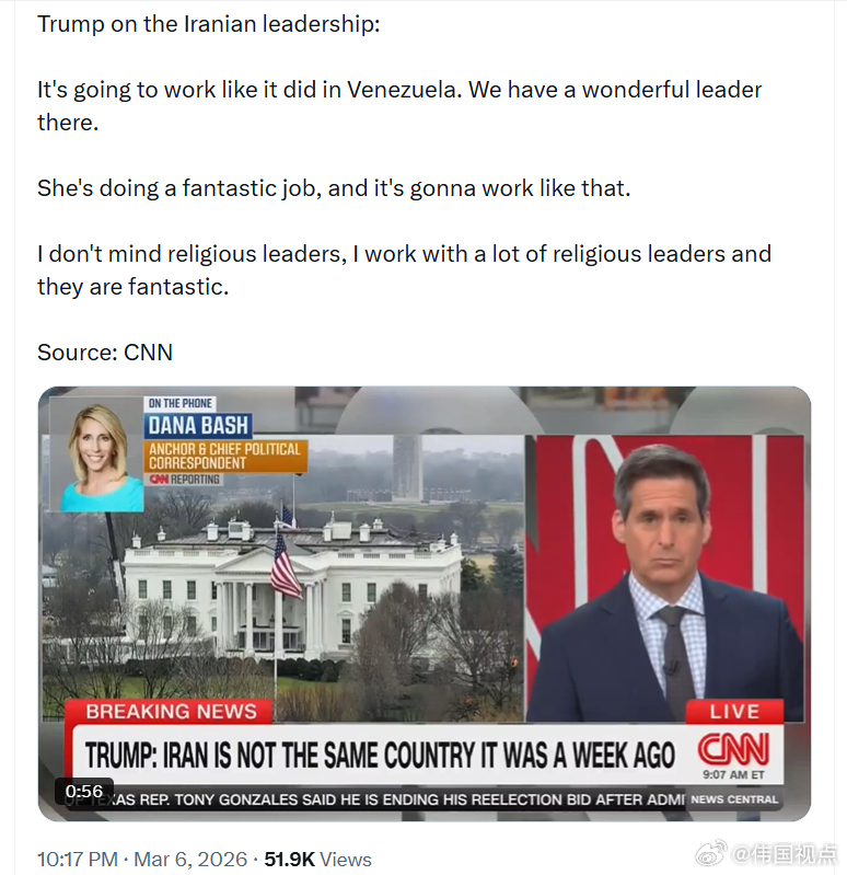 特朗普总统暗示对伊*的“政权更迭”策略将复制委内睡拉模式: