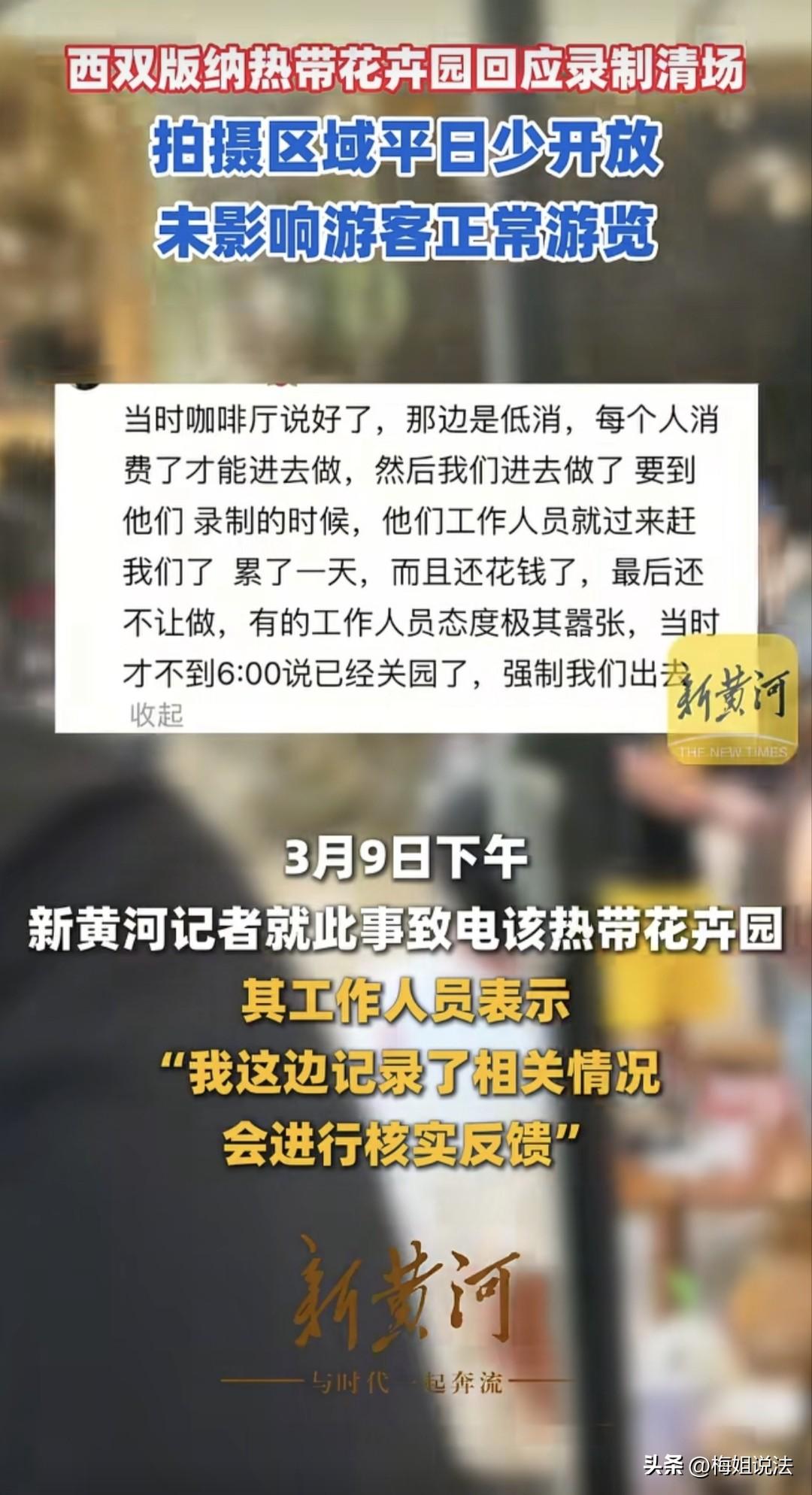 云南西双版纳,一网友发视频吐槽,自己飞了3000公里,买了门票去景区游玩,正玩的高兴突然被人轰了出去,原来,某综艺在这里录制节目要清场。网友气愤:名人了不起?我又不是他们粉丝! 网友称,自己好不容易飞了3000公里来到云南,都说云南的风景美如画,本以为自己在这里一定能够度过一个愉快的假期,哪能想居然碰到了这档子事! 当天,网友和同伴购买了云南西双版纳某景区的门票,由于之前已经逛了很久了,大家都有点累,刚好又看到景区里有一家咖啡厅,就想着过去问问能不能坐一会。 咖啡厅的工作人员告诉他们,店里有88元的最低消费,只有消费过的游客才能入座。 网友听后也没说什么,毕竟3000公里都飞过来了,门票也花了,88元的咖啡点就点吧。 随后网友就带着自己点的咖啡入座了,一边品着咖啡,一边赏着风景,时不时还有几道微风吹过,真是好不惬意,不过这份惬意并没有维持多久就被一群人给打破了。 这群人浩浩荡荡提着拍摄装备走了进来,网友一开始还觉得新奇,出来玩还能碰到明星,这可赚了!不料,当听到被人驱赶的声音,网友懵了! 这是闹哪出?自己花钱买的位子不能坐了?自己还没休息够呢! 但是赶人的人可不管这么多,态度强硬恶劣,不断地催促在场的游客赶紧离开,他们要清场开始拍摄了。 有游客立马就不干了,当场质问起驱赶者,凭什么让他们走?大家都是花了钱才在这里的,凭什么你说走就走? 看到有人抗议,赶人的人气势顺势就弱了下来,开始打起感情牌来,说他们要拍摄要工作,场地设备人员的花费也不少,东西带过来也辛苦,大家互相体谅理解一下。 这番说辞一出,强制赶人在前,现场的游客就更不满了,来这里玩的人,大部分都是远道而来,谁过来不是几百几千公里舟车劳顿的?谁不是既花钱又耗时的? 大家玩的好好的,被人赶不说,还要体谅赶人的人不容易? 况且,大家进来的时候没有任何一个人告知过他们,今天这里会有节目要借场地拍摄,也没有任何人提前通知清场的事情,有的人甚至刚进来屁股没坐热就要被轰出去,手里的咖啡一口没喝。 明明花了两份钱还没好好享受,就被人吆五喝六地驱离,这谁能接受? 视频发布到网上引发热议后,有人联系了该景区工作人员,询问事情真伪。 景区工作人员表示,他们并没有对游客实施清场这一举动,节目拍摄区域仅为景区内一小部分区域,是一个露营帐篷基地,平常几乎不对外开放,并不会影响到游客的正常游览、拍照,且节目拍摄时长约十多分钟,已经结束了,可以正常游玩了。 对于景区的回应,目前还没有涉事网友表示认可。 此外,对于上传的相关视频中,是可以清晰听到双方就清场问题的争执声,那么,究竟是节目组未与景区协商就单方面赶离游客,还是景区人员知情但不处理呢? 根据《消费者权益保护法》第八条,消费者享有知悉其购买、使用的商品或者接受的服务的真实情况的权利。 大部分游客对于景区有节目录制是不知情的,但景区显然是早就知道会有节目组来景区里录制综艺。 基于这一点,景区有义务通过任一形式提前告知游客这一情况,以便游客自行选择是否继续入园。 另外,依据《消费者权益保护法》第十条,消费者享有公平交易的权利,有权获得质量保障、价格合理、计量正确等公平交易条件。 游客既然支付了门票费用以及餐厅低消,但却遭到强制中断景点游览、消费体验,显然游客没有获得与付费对等的服务,这就破坏了公平交易的条件,景区有责任对消费者进行一定赔偿。 本来吧,旅游这件事,有人来你这玩,吃的住的哪个不是要花钱的,当地的好好招待,一来二往,也是一笔可观的收入,游客也收获了好心情,名声也打出去了,干嘛要做一些搬起石头砸自己脚的事情呢? 大家认为呢? 来源:新黄河