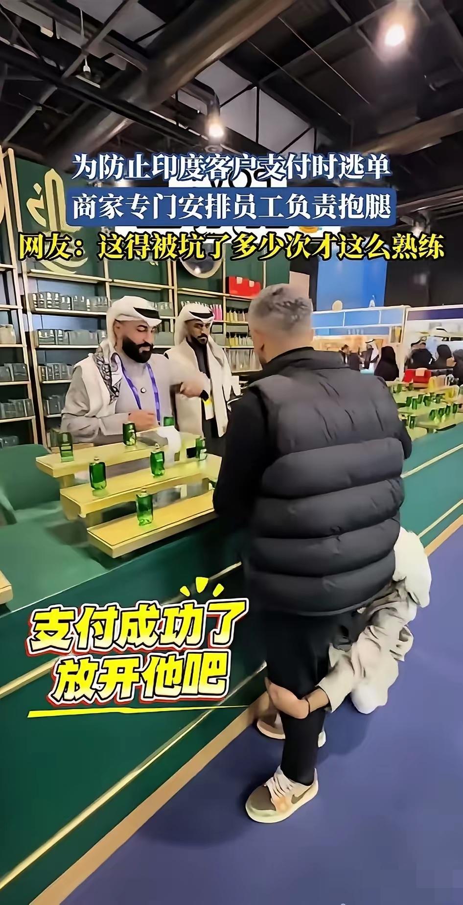 笑不活了!一名印度小伙子在阿拉伯国家买香水,竟被商家全程严防死守,拉手、抱腿、灭火器待命,主打一个生怕他付不起钱直接跑路,看呆网友,直呼这得被坑多少次才练出的熟练操作! 小伙只是想买瓶香水,结果刚进店,服务员就直接拉着他的手,强硬要求先付款再给商品,全程攥着不放,生怕一松手人就没了。更夸张的是,旁边还有个阿拉伯工作人员拿着灭火器随时待命,不知道的还以为要发生什么冲突,就是为了防小伙跑路。 就连小伙付款的过程中,还有另一位阿拉伯服务员直接抱着他的腿,把人牢牢固定住,直到付款成功的提示出现,这波层层设防的操作才终于结束。 之所以会有这样的场面,还是印度人在当地的口碑太差,商家被坑怕了,才会对印度顾客如此警惕,生怕稍不注意就被白嫖商品。网友看完纷纷调侃,这哪里是买香水,这分明是被当成了潜在的“跑单专业户”,也难怪商家会使出这么极端的防跑路手段。 不得不说,这也侧面印证了口碑的重要性,一次又一次的失信,最终只会让自己走到哪里都被提防,连正常消费都要被特殊“照顾”,属实是得不偿失。