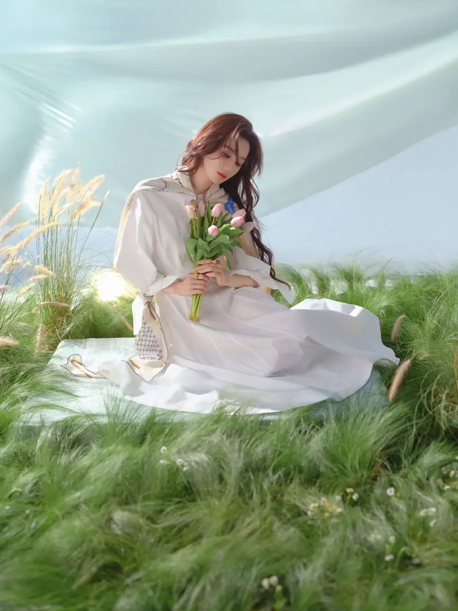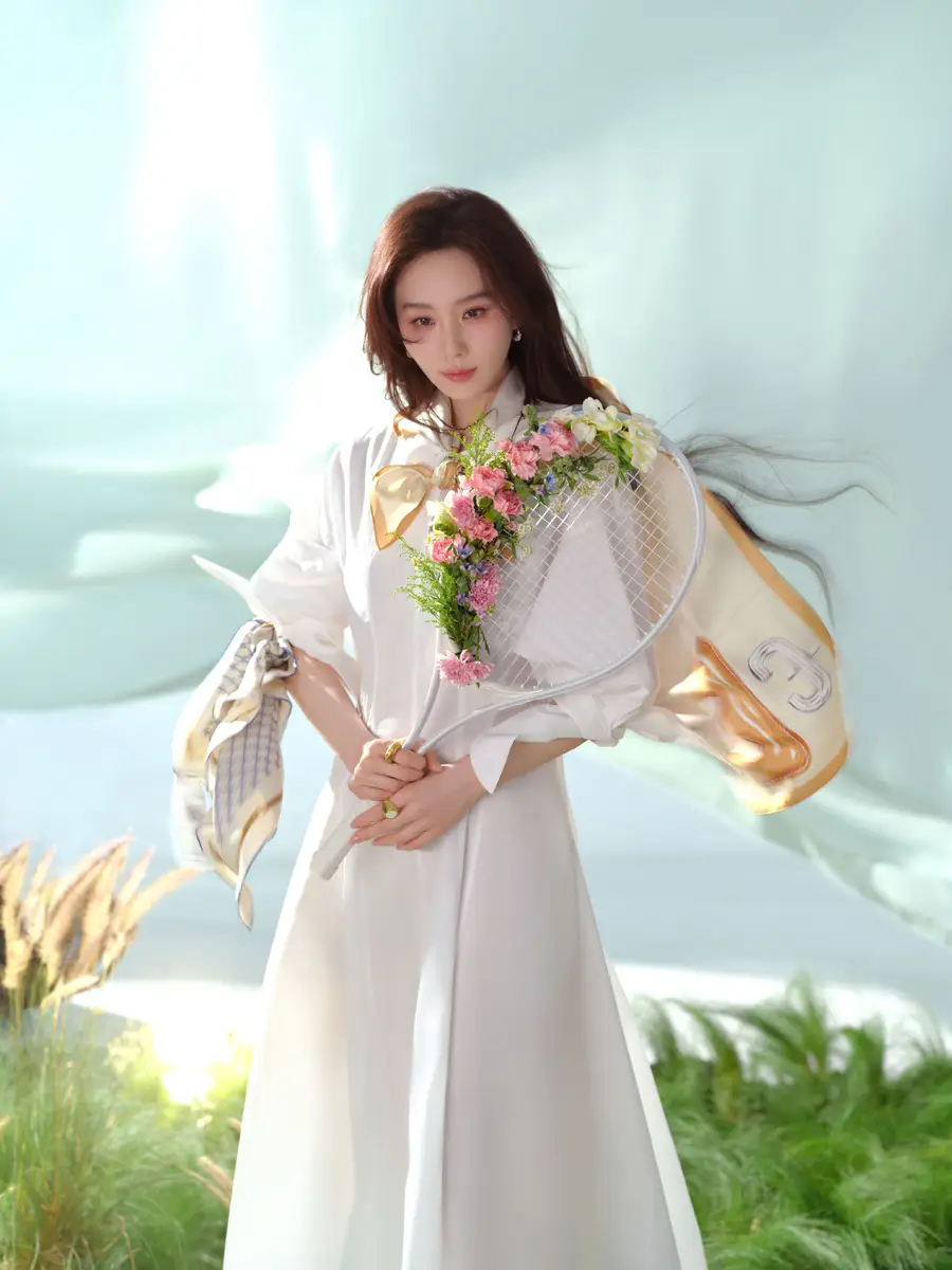 刘诗诗生日写真大片曝光!穿白色长裙手捧花束秒变温柔少女