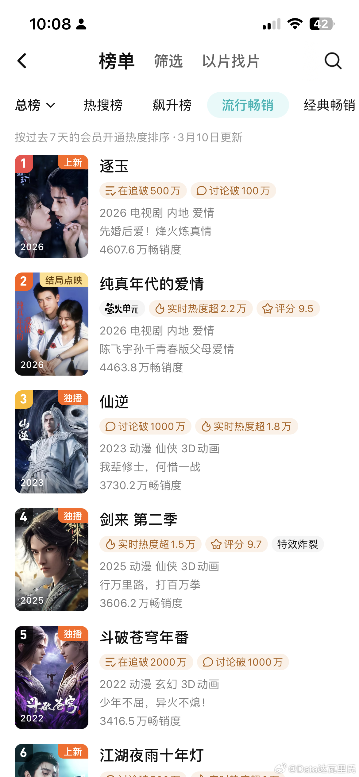 3.9开播第4天:张凌赫、田曦薇(平)逐玉 腾讯畅销榜(拉新周榜)第一了,数值4607.6万无压制数据5680万,第三,在许我和折腰之下