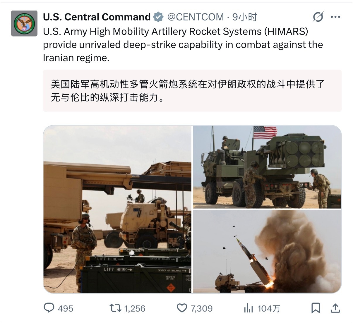 🔻网友分享:美军中央司令部的丘八用海马斯来吹嘘大本营战报,被伊朗人逮住了。🔻伊朗外长感谢美军中央司令部承认美国利用地区国家攻击伊朗。🔻阿巴斯·阿拉格希表示:“感谢美军中央司令部承认你们正在利用我们邻国的领土部署‘海马斯’系统攻击我国人民,其中显然包括一座海水淡化厂。如果我们威力强大的导弹为报复而摧毁这些系统,无论它们位于何处,任何人都不应抱怨。”🔻美军中央司令部的帖子被他引用,图片如下。伊朗放弃猛打猛冲伊朗发起第32波打击海外新鲜事中东现场直击