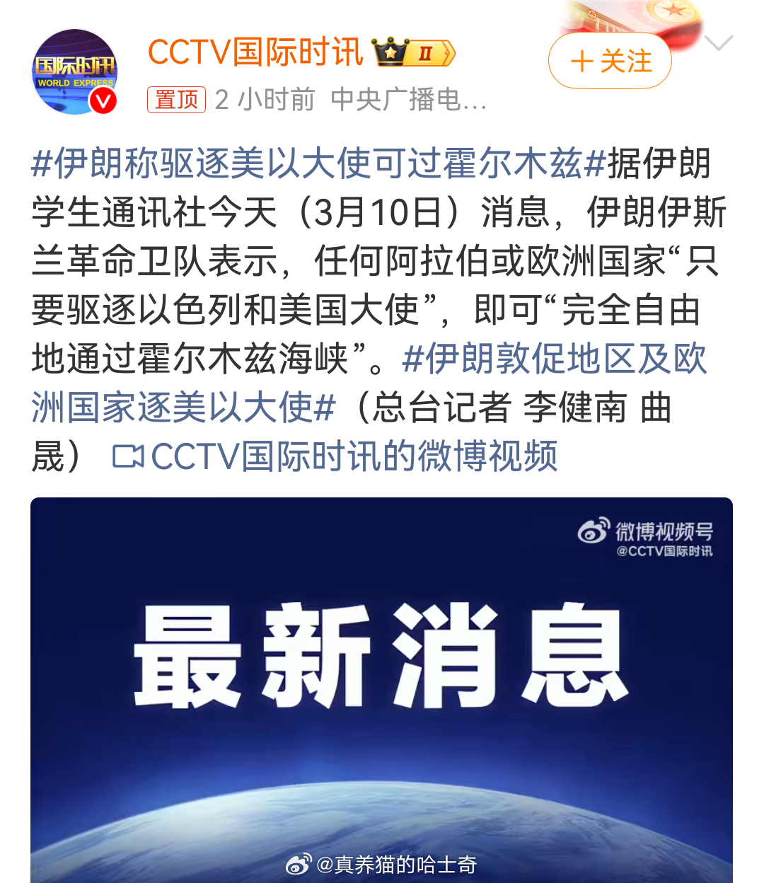 伊朗称驱逐美以大使可过霍尔木兹注意,是欧洲和阿拉伯国家,日韩就算驱逐了美国和以色列大使也不行。