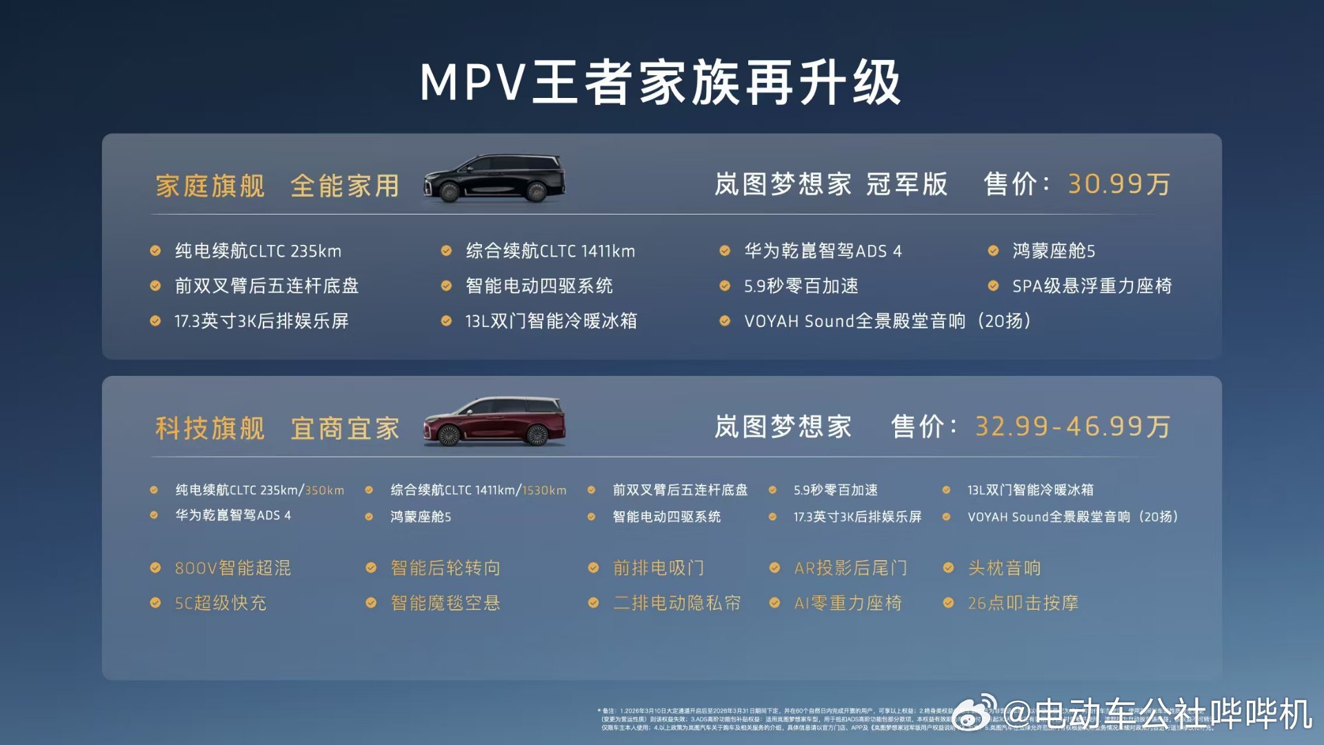这个版本虽然没有800V高压平台和5C超充,但毕竟它的使用场景是家用,对有家充桩的车主来说也并没有很大影响。岚图梦想家冠军版上市
