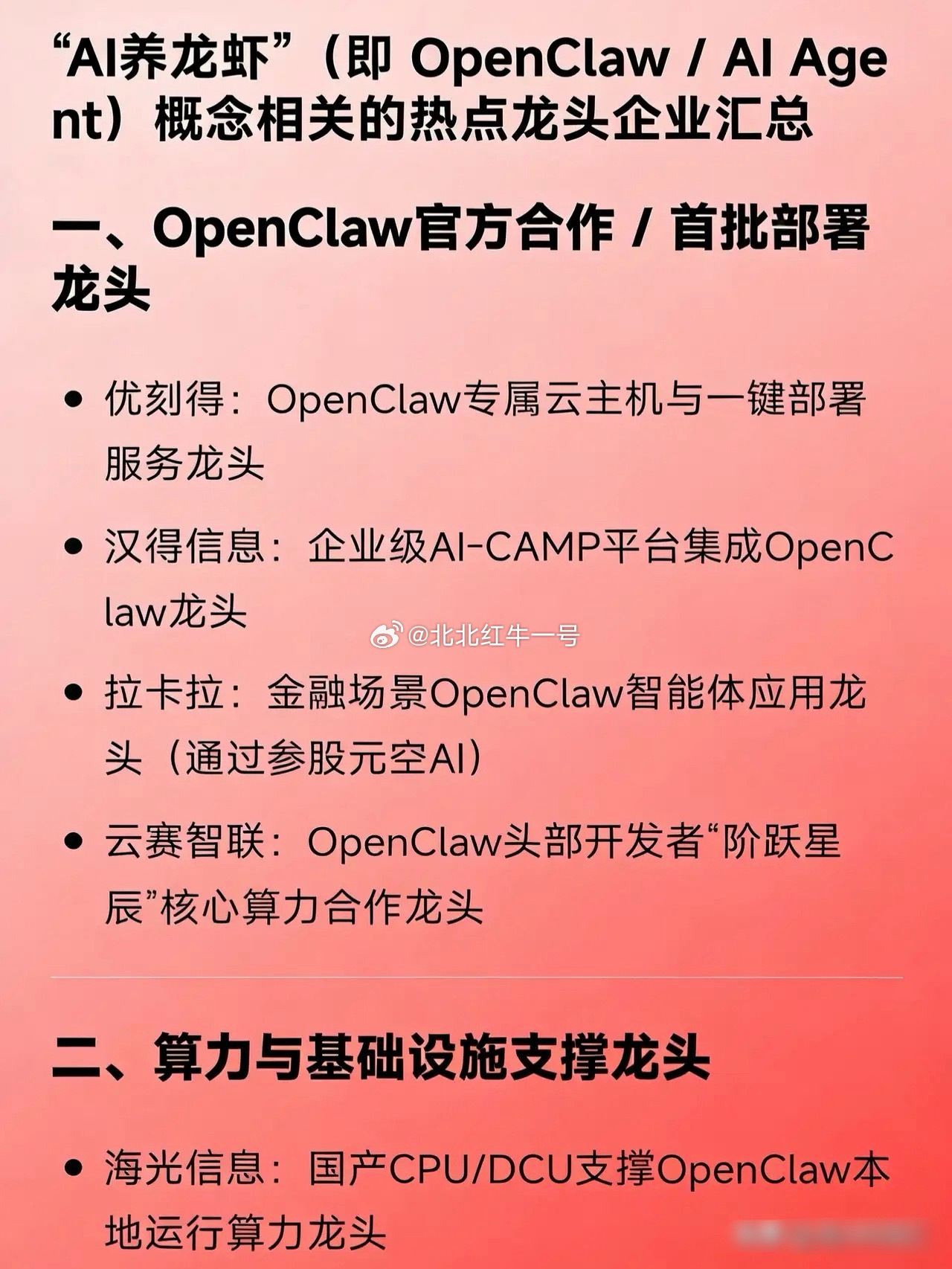 “AI养龙虾”(即 OpenClaw / AI Agent)概念相关的热点龙头企业汇总