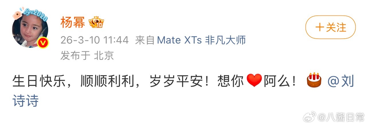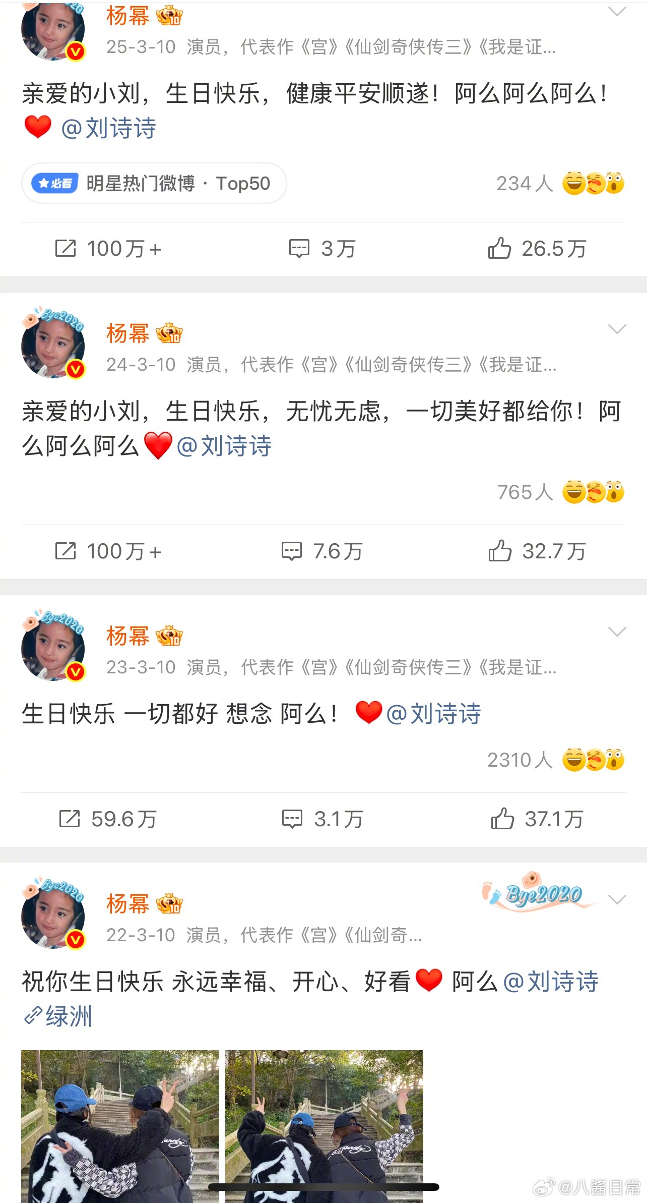 杨幂连续五年发微博给刘诗诗庆生杨幂连续五年为刘诗诗庆生诗幂