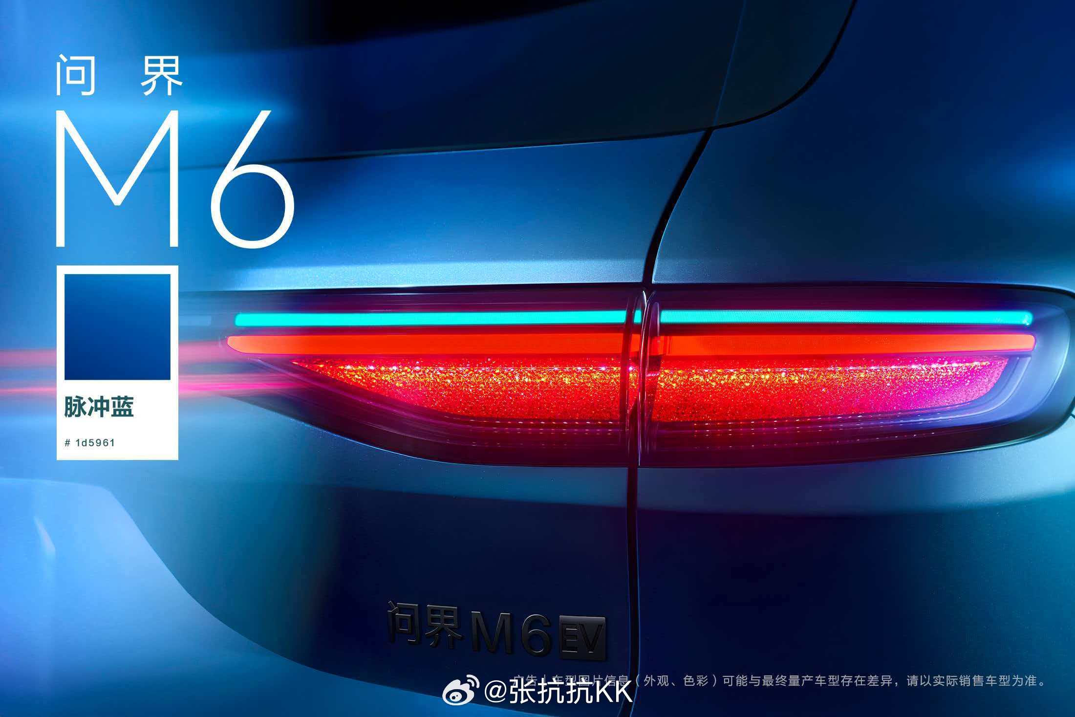 新锐王牌问界M6七色亮相问界M6,脉冲蓝。深邃的蓝与澄澈的青混合在一起。脉