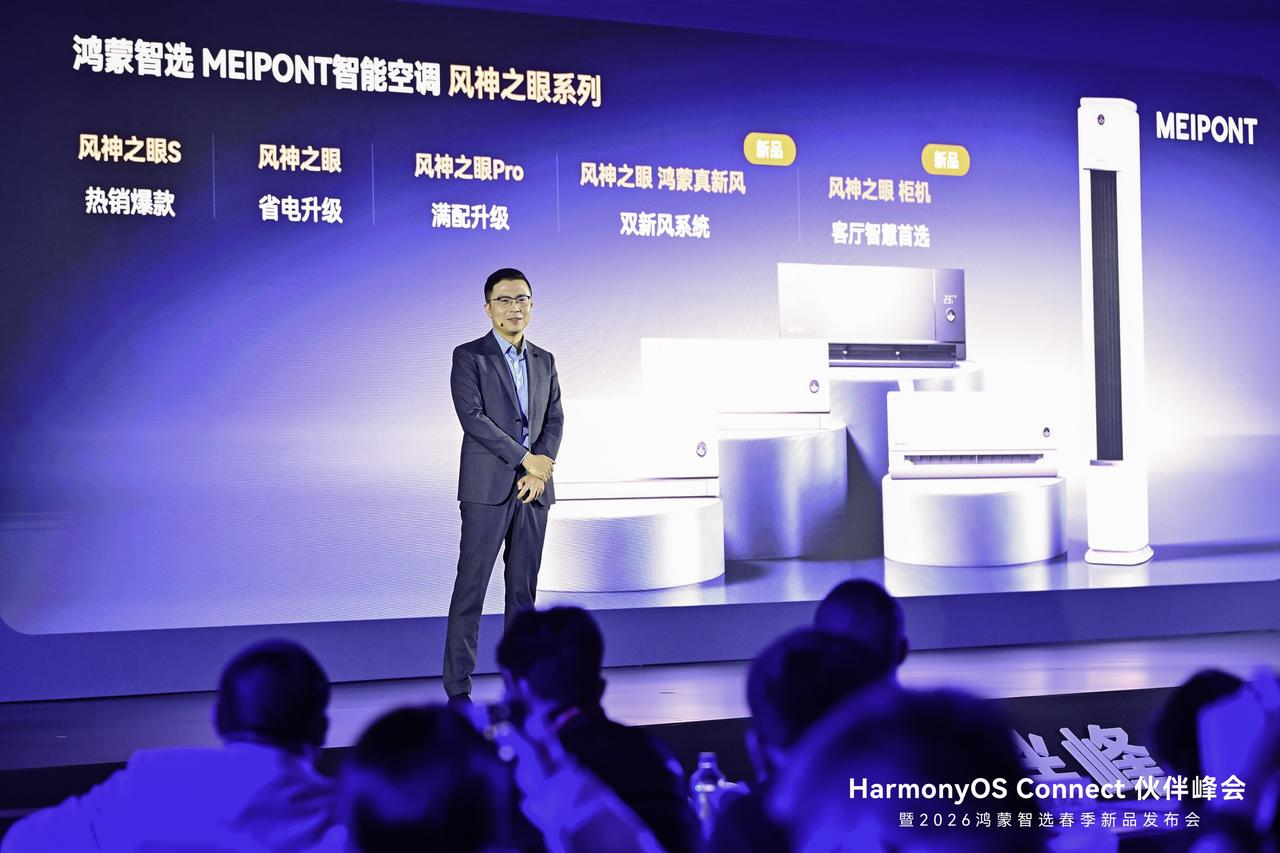 MEIPONT风神之眼家族 亮相鸿蒙智选2026年春季新品发布会 推出全新风神之眼鸿蒙真新风&3匹柜机 定义下一代智能真新风空调