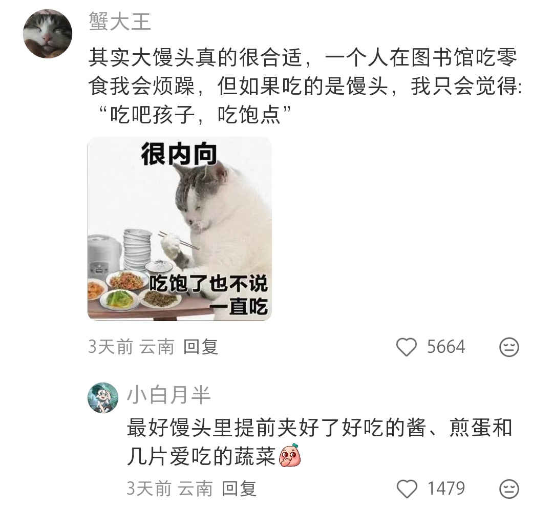 哈哈哈在图书馆啃馒头的话,别人都不会有意见,因为看起来很命苦