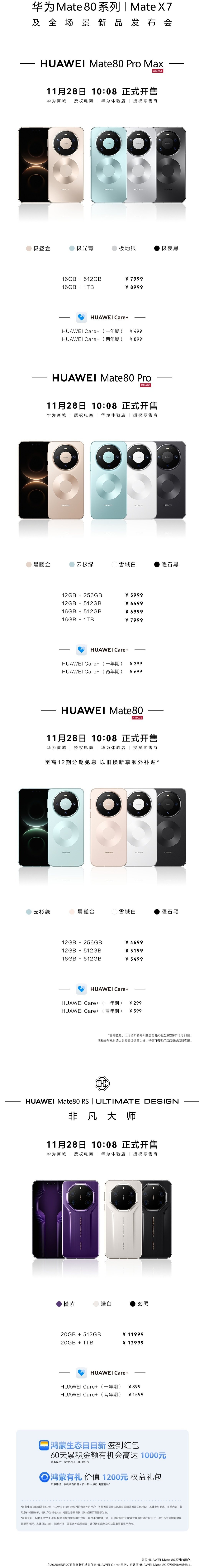 汇总华为 Mate 80 系列手机售价如下: