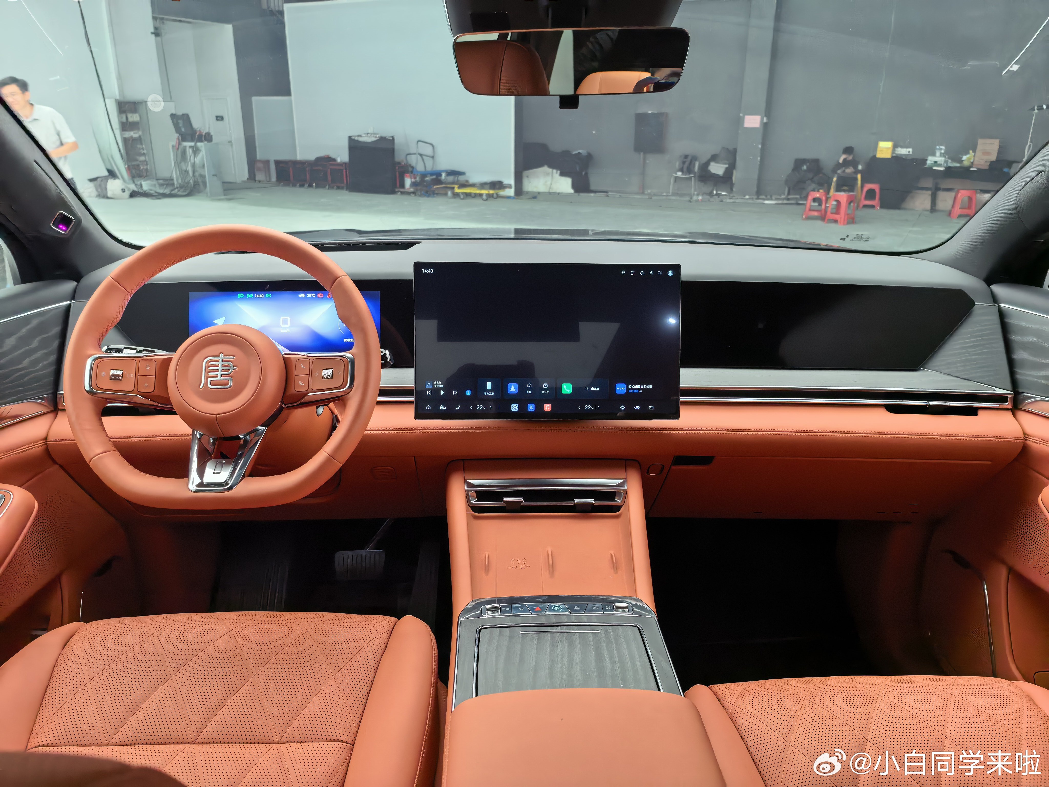 这次大唐也是二排小桌板、冰箱和后排吸顶屏都有,虽然不是最终量产版,但座椅舒适性不错。