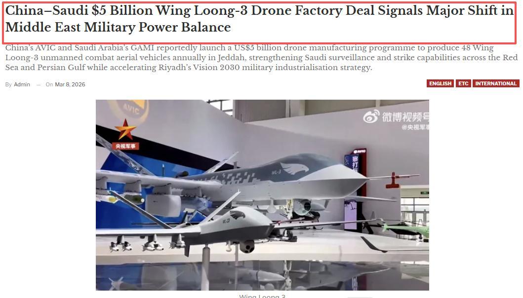 沙特官宣:5亿“低价”买走翼龙-3生产线,中国吃大亏了? 沙特最近正式官宣,和中国航空工业集团敲定了一笔总额50亿美元的合作合同。双方约定,要在沙特吉达建成一条翼龙-3察打一体无人机的总装线,投产后每年能生产48架翼龙-3。 消息一出来,不少网友直接懵了。很多人看完都在吐槽,这么先进的无人机生产线,网传才卖5亿美元,咱们国家这波肯定吃大亏了,纯属赔本赚吆喝。 其实大家真的想多了,中方不但没亏,反而算得上是“大赚特赚”。翼龙系列无人机的总研发投入,根据公开行业数据显示,大概在5到10亿美元上下,绝非瞎编。 解放军早就大批量列装了翼龙系列的部分型号,翼龙无人机也已经出口到多个国家。早在2017年,沙特就一次性采购了数百架翼龙-2无人机,那会儿中方就已经收回了翼龙系列的研发成本。 现在不管是卖翼龙成品,还是出让生产线的许可权,中方赚的每一分收益都是实打实的纯利润。别被网传的5亿美元误导,这笔50亿美元的合作不只是前期生产线费用,后续的持续收益才是关键。 很多人担心核心技术被沙特拿走,这个顾虑完全多余。中方并没有彻底卖掉翼龙-3的核心技术,这次合作只是给沙特提供许可生产的权限,核心技术始终牢牢掌握在咱们手里。 根据双方的协议内容,未来几年,中方才会逐步向沙特方面提供部分设计图纸和CKD散件,还会派遣工程师驻厂提供技术指导。沙特拿到的,顶多是一些边缘生产技术。 沙特新建的这座总装厂,本质上就是一个组装车间。它的本土设备生产率不会超过45%,尤其是发动机、航电、传感器这些核心部件,至少3年内都要从中国大量采购。 这些核心部件本身就是高利润产品。按照工厂每年48架的产能计算,中方每年单靠供应核心部件,就能获得2到4亿美元的收入,这笔收益比单纯卖成品无人机更稳定。 除此之外,中方还要为沙特提供飞行员培训服务,帮助其搭建完善的维修和物流保障体系。沙特明确要求,备件库要稳定囤积2000种以上的常用备件,这些备件大多都要从中国采购。 大家可以算一笔账,如果不卖生产线,中方直接卖48架翼龙-3成品,按照单机600万到1200万美元计算,也就只能赚3到6亿美元的直接收入。 现在中方一次性拿到50亿美元的合作款项,后续还能靠核心部件、备件供应、技术培训持续盈利,这笔合作压根谈不上“亏”字。 更重要的是,沙特会成为翼龙无人机最好的宣传名片。有了沙特的本土化生产案例,未来肯定会有更多海湾国家对这种合作模式感兴趣,中国高端无人机的出口之路会更宽。 中国在沙特的石油及其他产业投资规模庞大,目前已有750家中企在沙特开展业务,相关投资覆盖先进制造业、石化等多个高附加值领域。 帮助沙特提升军事能力,防止它的关键产业遭到潜在对手的打击,这也是在保护中方自身的海外利益。 沙特对翼龙-3的需求总量,大概率会达到200到300架。按照每年48架的产能计算,光是组装这些无人机,就需要8到10年时间,中方的盈利周期会拉得很长。 翼龙-3作为全球顶尖的察打一体无人机,靠长续航、大载荷和实战口碑,才赢得了沙特的信任。沙特花50亿美元拿到本土组装和大修能力,也是花小钱办大事。 这笔合作根本不是谁亏谁赚的单方面交易,而是中沙双方的双赢。中方既赚了眼前的收益,又铺好了未来的合作之路,还巩固了两国的战略伙伴关系,怎么看都是明智之举。