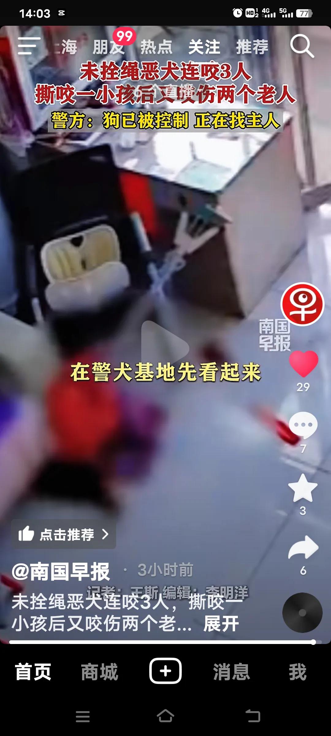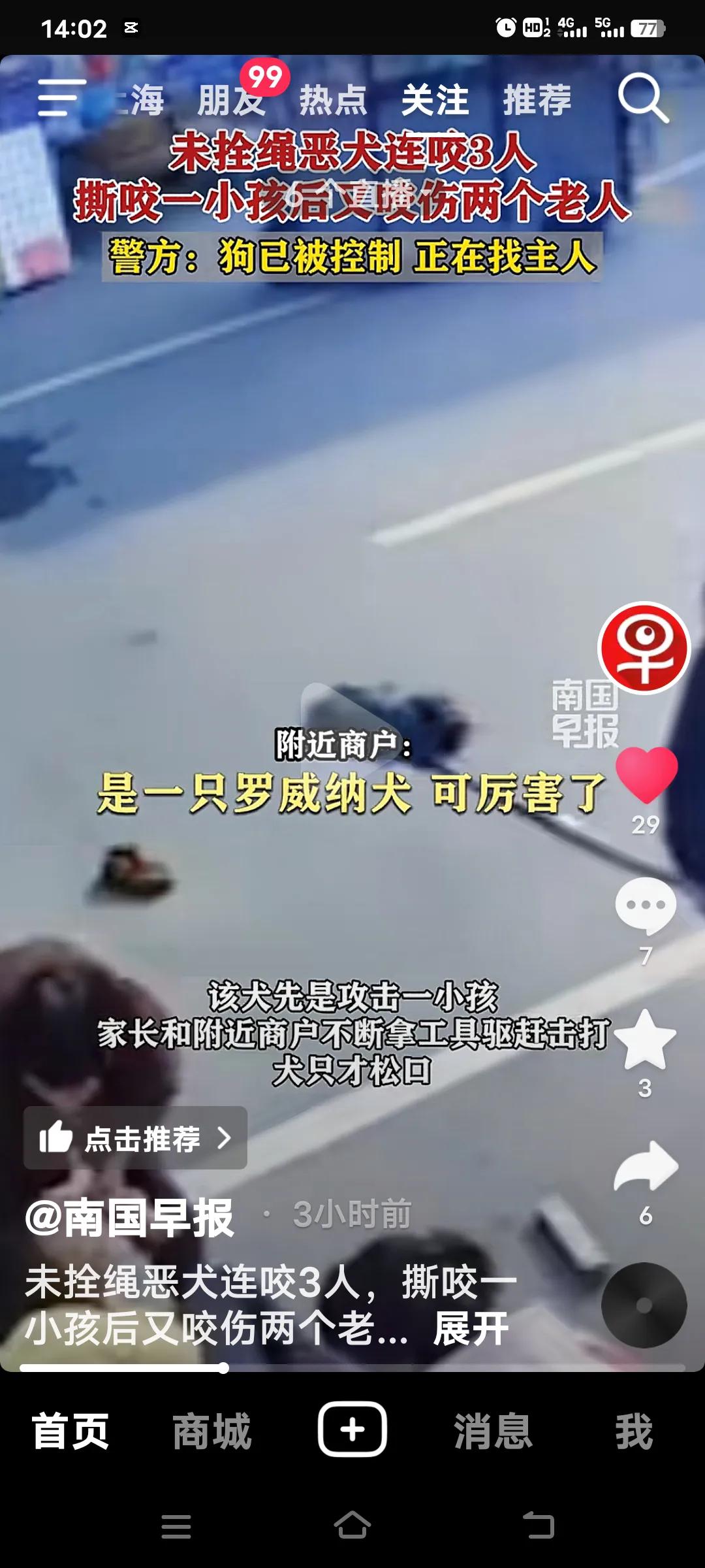 狗不拴绳咬人事件真是屡见不鲜。3月9日,山东临沂临沭县一只疑似罗威纳的犬在大街上咬伤3人,先咬伤了孩童,接着又咬了两人,老人躲进店里它仍不罢休,继续攻击,实在是令人愤恨!这狗竟连咬三人。 狗主人却不见踪影,有网友气愤地表示,必须让狗主人承担狗造成的一切后果,承担所有费用,甚至让其坐牢。虽说这是大家心里窝火才这么说,但找到狗主人谈何容易?就怕他拒不承认。 未牵绳狗伤人 无绳恶狗伤人