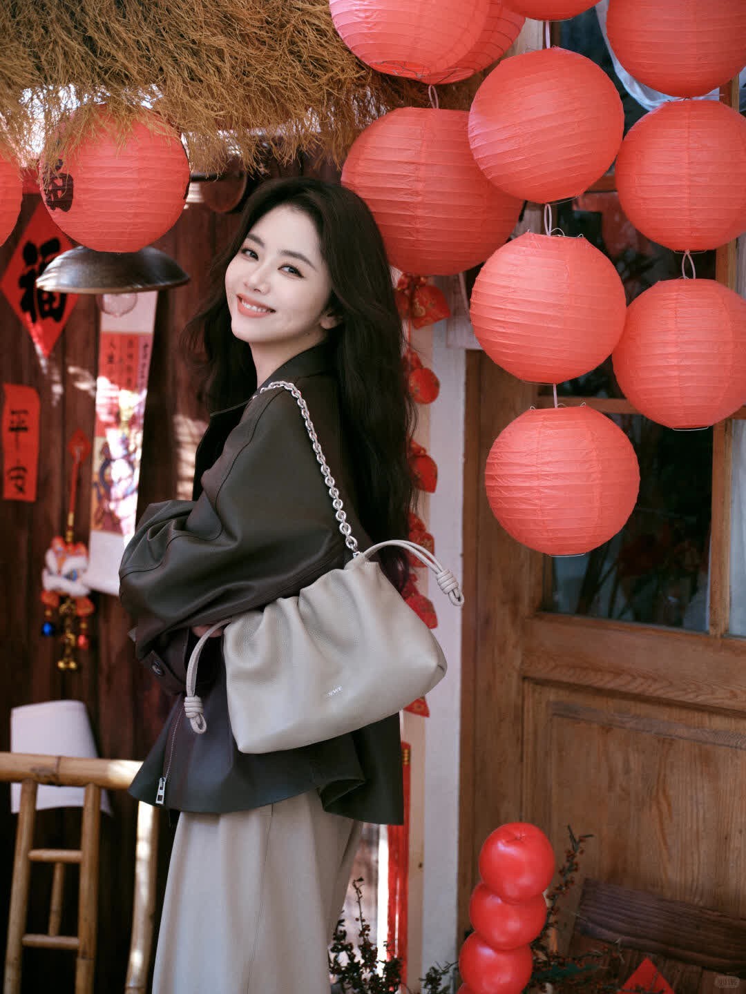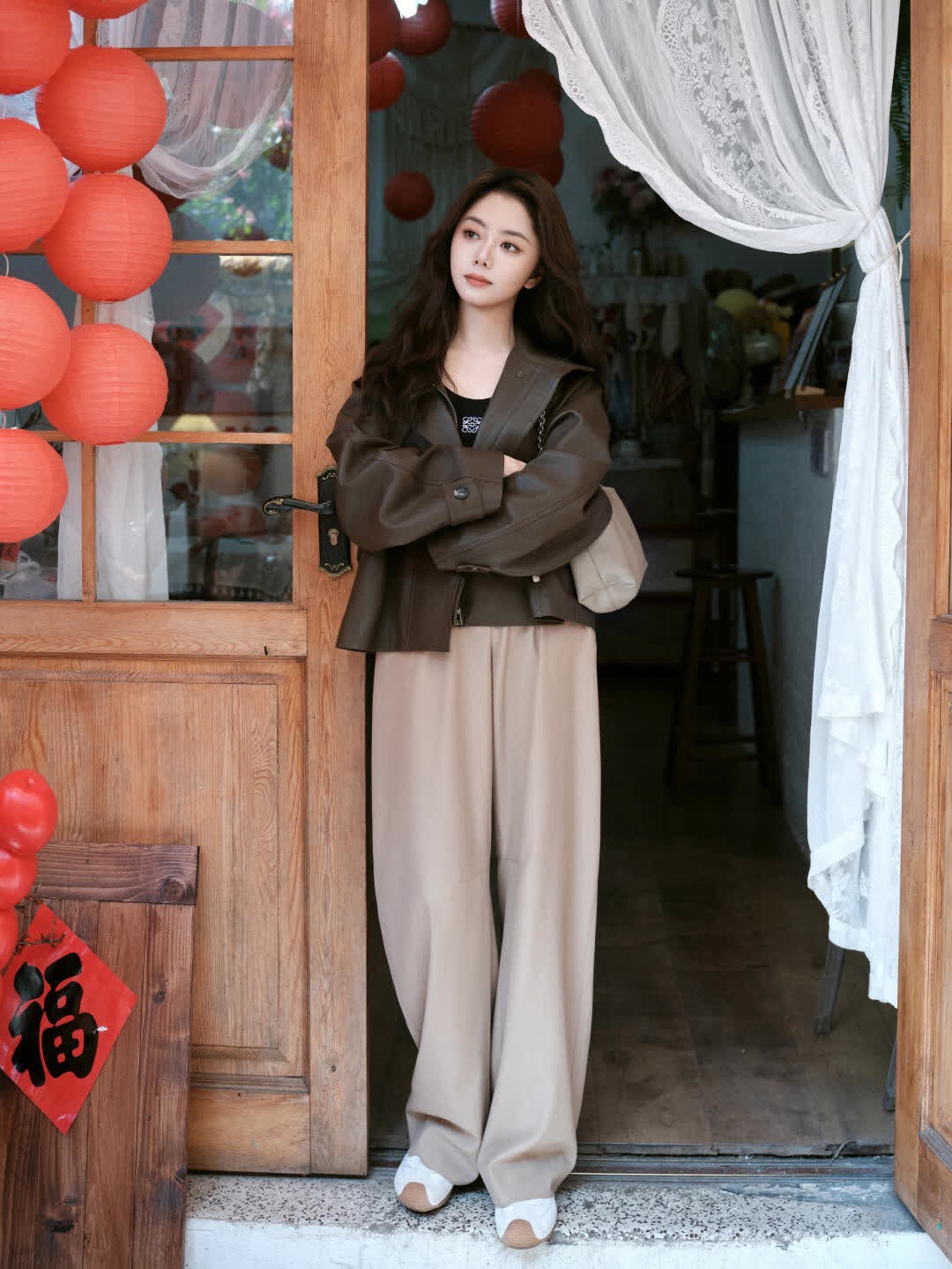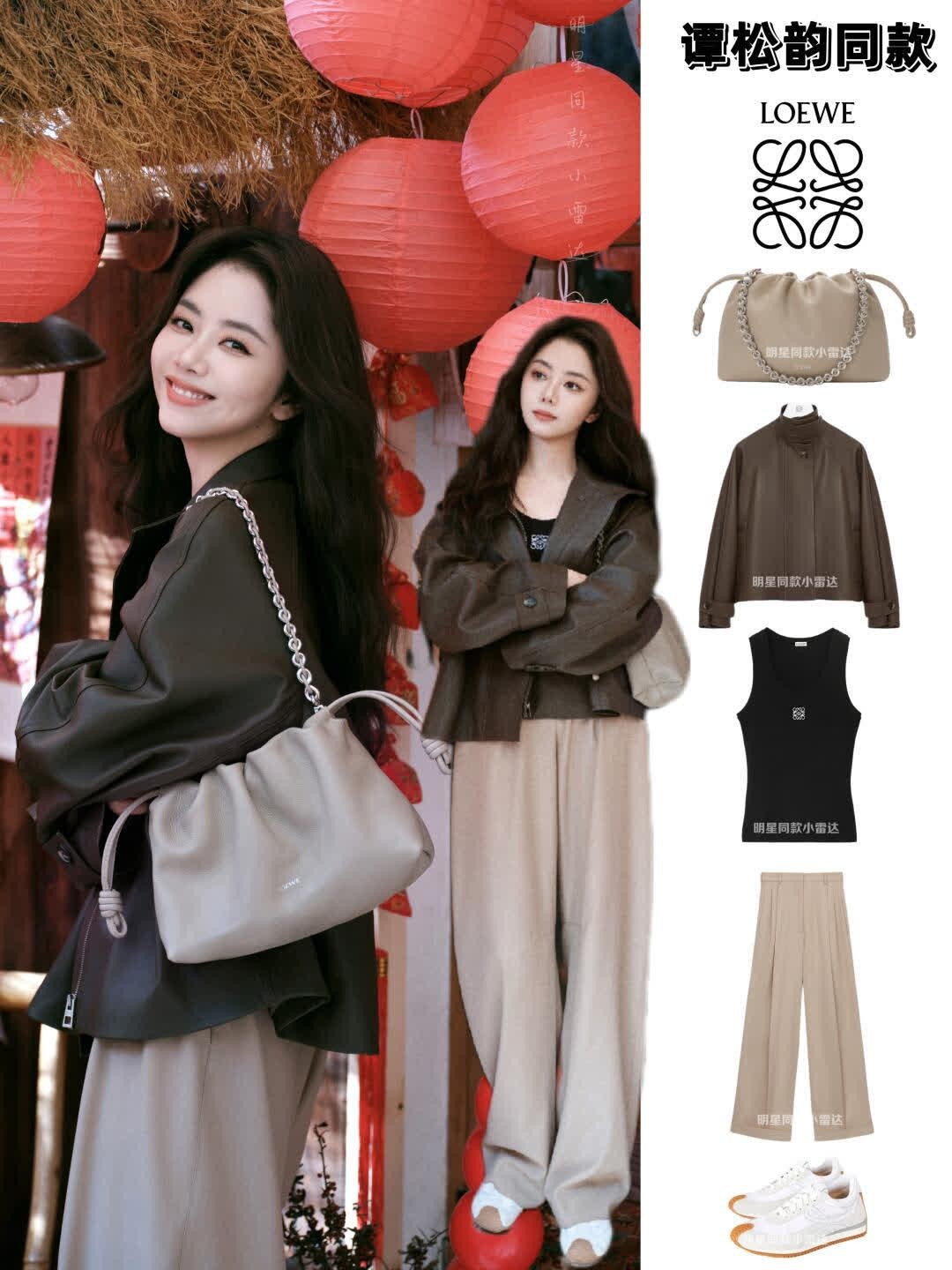 谭松韵,过年回家的时髦小姨既视感✨ 谭松韵这组新年街拍一出来,直接就是“过年回家最会穿的小姨”本人! 过年回家这么穿,长辈见了都要夸,哈哈你就是全家最会搭的崽! 👜 LOEWE 云朵包 🧥 LOEWE 皮衣外套 🩳 米色阔腿裤 👟 白色复古运动鞋 谭松韵.非遗里的中国年.redfaceof100fashion.是哈哈你喜欢的明星吗同款.过年穿什么.女是哈哈你喜欢的明星吗同款.春节回家穿搭.新年穿搭.跟着是哈哈你喜欢的明星吗学穿搭.过年回家这样穿.
