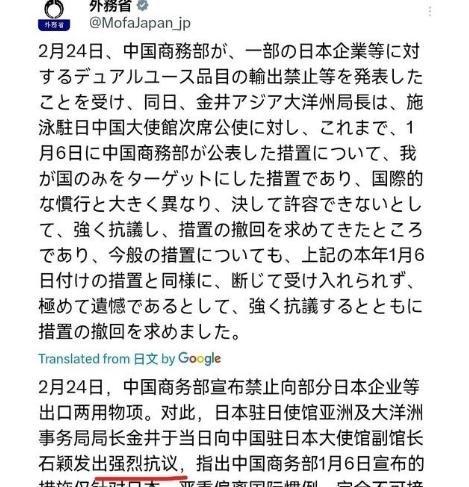 日本那边,不装了。一份声明直接发到我们脸上,措辞极重:“绝对无法接受!”就因为我们把那20家日本实体,放进了管制名单。电话打到我们使馆,公使直接被叫过去当面交涉。对方几乎是敲着桌子质问,说这事只针对日本,不符合国际规矩,要求我们立刻、马上、无条件撤销。 2026年2月24日,中国商务部连发两份公告,第11号和第12号,直接把40家日本实体分成两档处理。第11号公告把20家参与提升日本军事实力的实体列入出口管制管控名单,包括三菱造船株式会社、三菱重工航空发动机株式会社、川崎重工航空宇宙系统株式会社、IHI宇航株式会社、日本防卫大学、日本宇宙航空研究开发机构等。 这些企业大多是日本军工核心,涉及船舶建造、航空发动机、舰艇动力、导弹系统、雷达等关键领域,直接支撑日本自卫队装备研发和生产。管控措施很明确:禁止中国出口经营者向这些实体出口两用物项,禁止境外组织和个人把原产于中国的两用物项转移或提供给它们,正在进行的活动必须立即停下来。特殊情况需要出口的,得向商务部单独申请。公告当天生效,没有缓冲期。 第12号公告针对另外20家无法核实两用物项最终用户和最终用途的日本实体,列入关注名单。名单里有斯巴鲁株式会社、富士航空航天技术株式会社、引能仕株式会社、运输机工业株式会社、三菱材料株式会社等,覆盖汽车、航空技术、能源、材料加工等领域。这些企业虽然不直接列为军工,但部分有军民两用背景,比如斯巴鲁的航空部门长期为日本防卫提供零部件。 措施是出口不能走通用许可,单项许可申请必须交风险评估报告,外加书面承诺不用于提升日本军事实力。审查期限拉长,不受常规时限限制。商务部会对最终用户和用途实施更严格审查,涉及日本军事用户、军事用途或有助于提升军事实力的其他用途,一律不批。如果这些实体主动配合核查,提供材料证明,商务部核实后可以移出名单,留了条后路。 这两份公告的背景是日本近年来防卫政策调整明显。防卫预算连年增加,放宽武器出口限制,推动军事力量外向型发展。日本政府逐步突破战后和平宪法框架,参与海外军事合作,周边国家看在眼里。 中国多次表达关切,认为这些变化增加地区不稳定风险。商务部发言人直言,此次措施是为了维护国家安全和利益,履行防扩散国际义务,制止日本“再军事化”和拥核企图,完全正当、合理、合法。只针对少数实体和两用物项,不影响中日正常经贸往来,守法企业不用担心。 日本政府反应激烈。内阁官房副长官佐藤圭在记者会上说,这措施“绝对无法接受,感到极为遗憾”,已提出强烈抗议,要求中国撤回。日本外务省亚洲大洋洲局局长金井正彰召见中国驻日使馆公使,表达不满。 日本把这视为单方面针对行动,称不符合国际通行规则,会损害日本企业正常经营和两国经贸合作氛围。首相岸田文雄的内阁成员公开表态,批评中方缺乏事前沟通。股市马上有反应,三菱重工股价一度跌3.6%,川崎重工和IHI跌幅超过5%,斯巴鲁也下跌。经团连等日本经济团体表达担忧,怕供应链受冲击。 中国这边立场稳。商务部强调,措施基于出口管制法和两用物项出口管制条例,符合国际惯例。正常贸易继续,只管有风险的少数实体。企业如果配合核查,就能申请调整。中国重申,中日经贸联系紧密,谁都不想看到摩擦升级,但国家安全底线不能让步。日本军事化趋势如果继续,周边安全压力会加大,中国有责任防范两用物项流向军事领域。