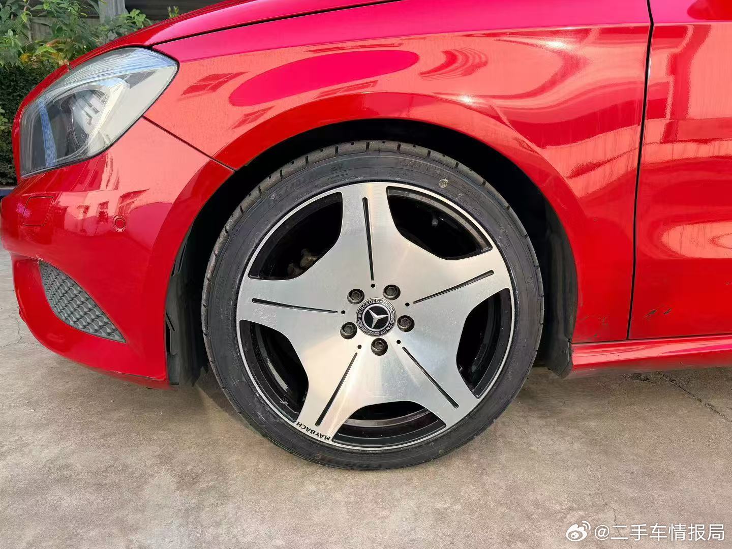 歪日,朋友介绍了一台奔驰A晚上去收一看这个轮毂我头一晕…4条新轮胎忍了,回头看要不然换轮毂吧