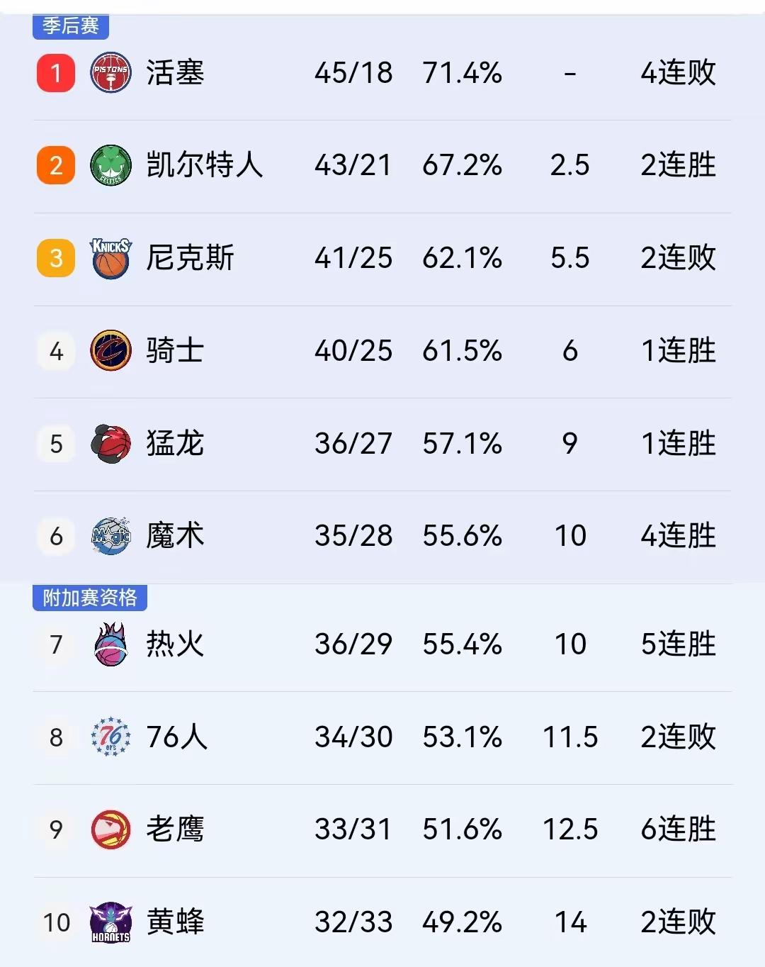 近两战累计15中3仅得7分,骑士神射手梅里尔成为全队最清醒的球员。 塔图姆提前满血复出后,凯尔特人一跃成为东部冠军的最大热门。为了尽量避免提前碰到绿军,东部第三尼克斯在客场39分大胜掘金后,又先后爆冷输给洛杉矶双雄遭遇两连败,如愿将领先骑士的优势缩小到只有半个胜场,随时都可能将骑士抬进东部第三的位置。 一波四连败,东部第一活塞队伪强队本色尽显,不管是骑士或尼克斯,都想在东部次轮选择打活塞而避开凯尔特人。尼克斯连败中,让第四名的骑士左右为难,近两场累计15中3仅得7分,也许骑士神射手梅里尔才是目前全队最清醒的球员。