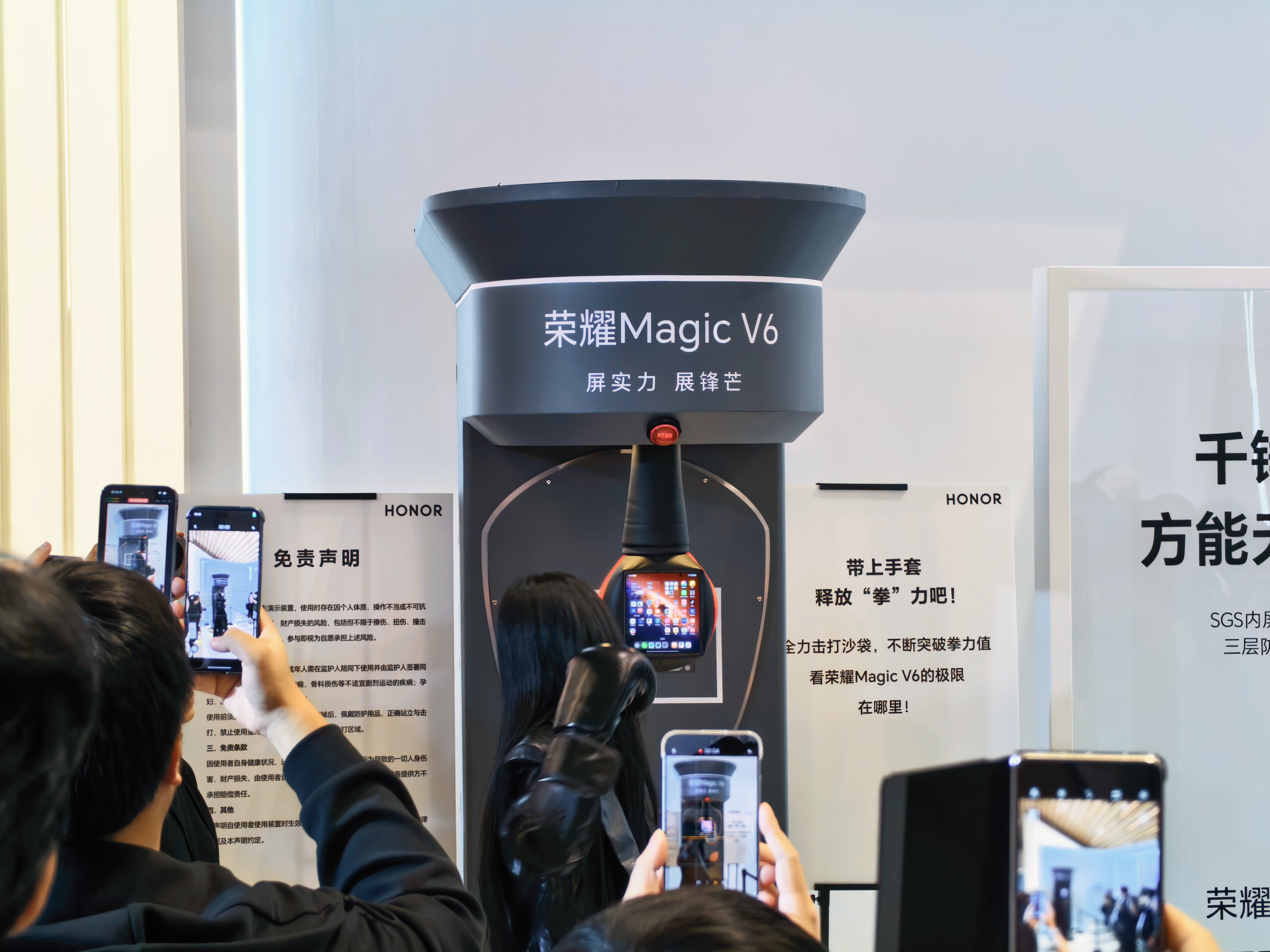 荣耀Magic V6 马上发布了,在进会场前,我看到了各种“折磨”手机的场景,有水泡的V6,有冰冻的V6,还有被拳击的V6,这也太硬核了吧! 深圳·前海国际会议中心