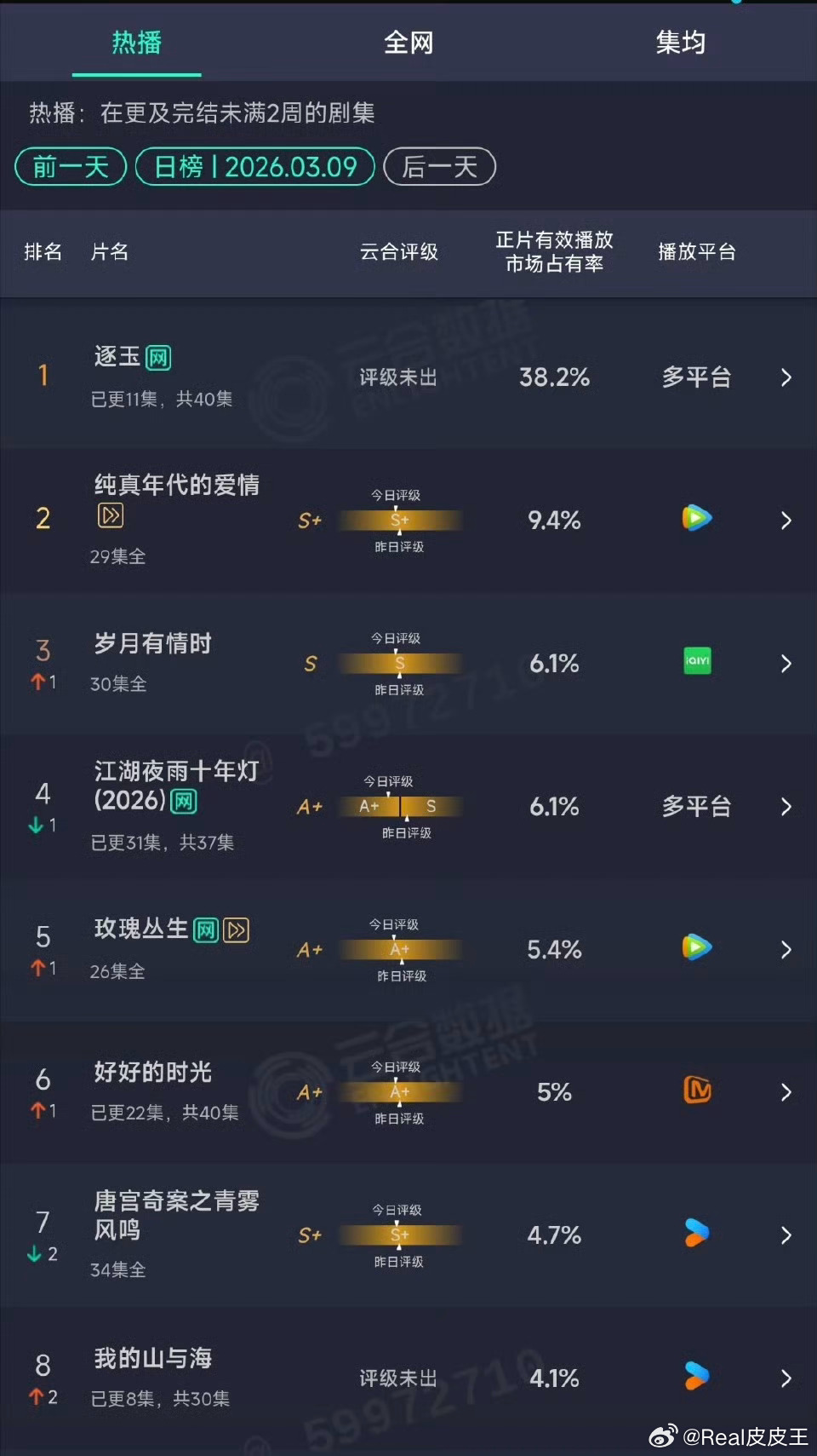 张凌赫、田曦薇的《逐玉》云合单日已经高达38.2%,明后天就可能单日破亿……年冠似乎稳了。